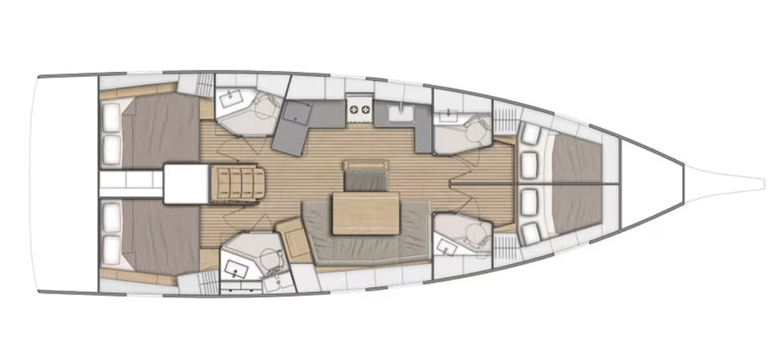 Space – think floating villa: wide decks, large cockpit, separate cabins