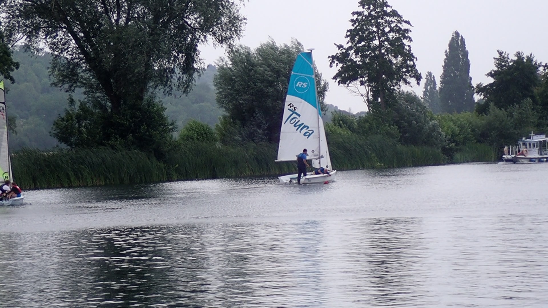 Now, Paul and I have many talents. But matching the speed of a hyper-focused teenager in a Feva with the reflexes of a caffeinated squirrel is… not one of them. Still, we gave it our best shot — trying to speed up with perfect sail trim and centreboard position, then suddenly slow down by moving all of our considerable weight to the back without accidentally gybing into oblivion. We even practised sailing the boat to a crawl without stalling it — a surprisingly tricky art when your boat still thinks it's a shopping trolley in a gust.