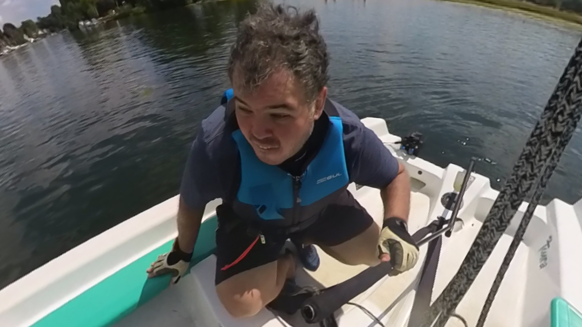 At the medium mark, we saw a couple of girls struggling to round it, which gave us hope. But by the time we got there, they were nearly at the finish line—and one was capsizing. I’d already done everything I could to boost our speed, including slightly raising the daggerboard (a move I call optimism with a handle). But then we found ourselves stuck in the dreaded dead zone near the bank. No wind. No momentum. Just us and a silent prayer.