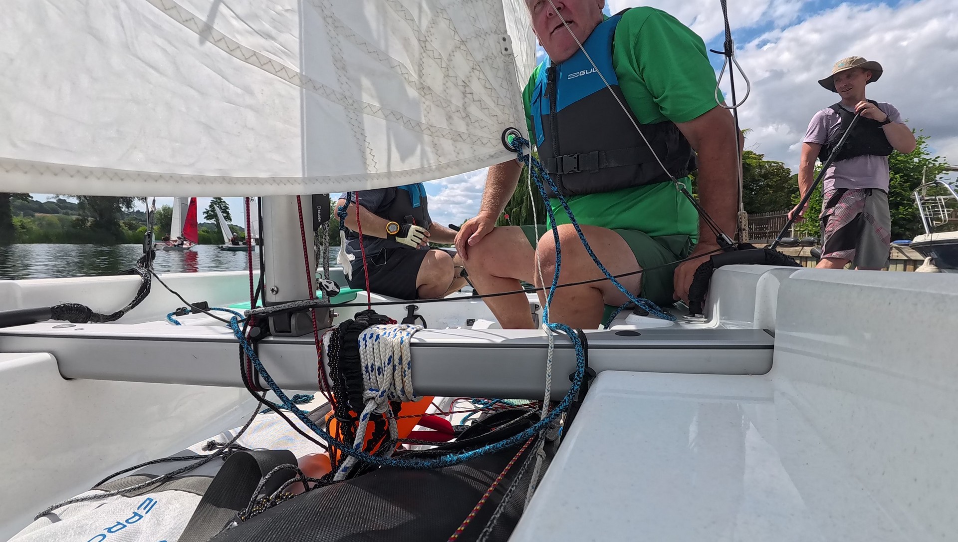 We launched early, sneaking in a bit of light-wind practice before the other boats were rigged and launched. Sailing across the river was manageable, but getting up and down it was more of a polite suggestion than a manoeuvre, thanks to the fluky wind direction.