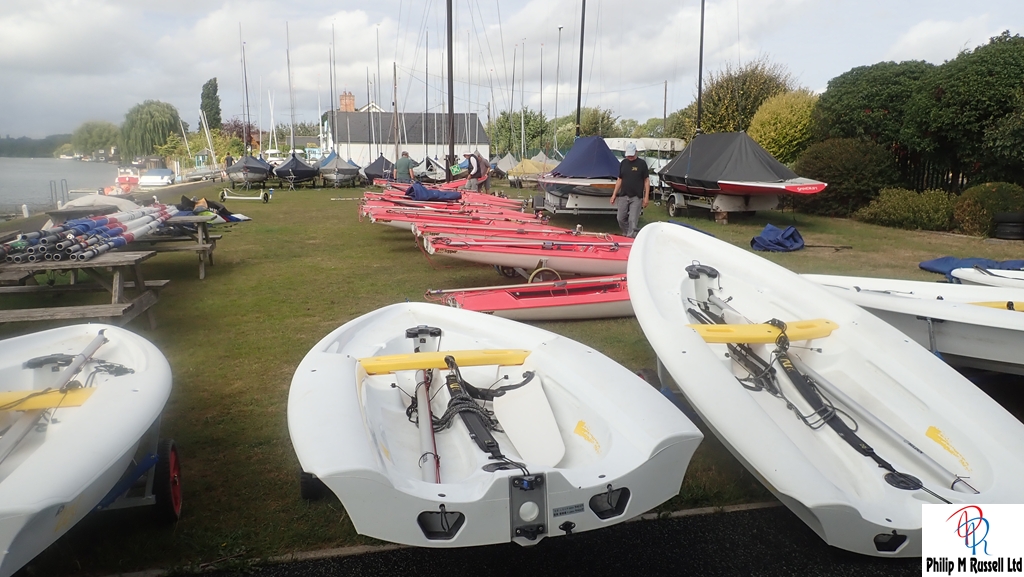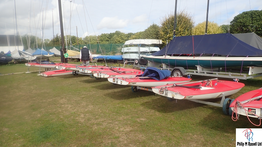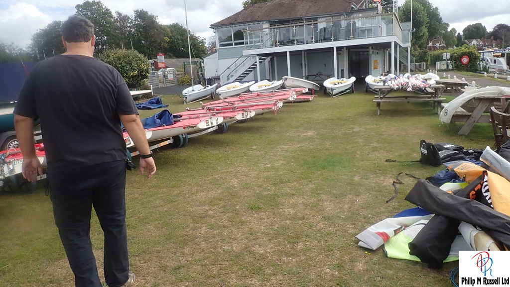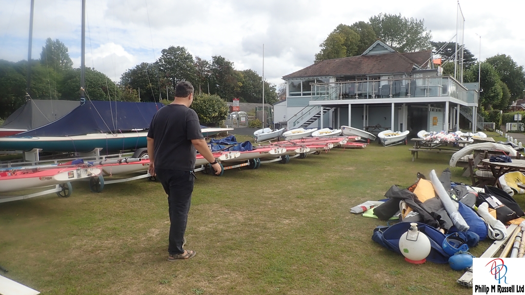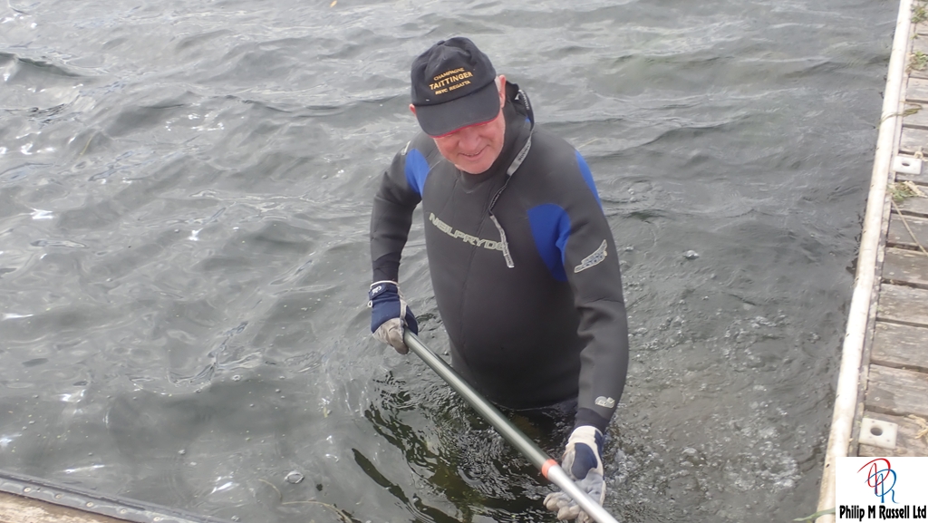 He donned with wetsuit and spent much of the day in the river pulling out much of the weeds that were catching on the rudders, so that the rest of us could enjoy some great sailing.