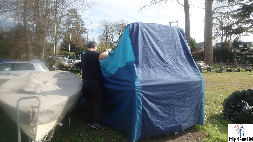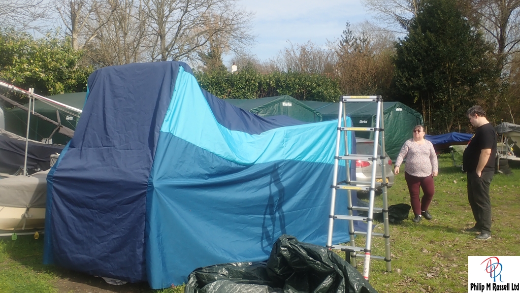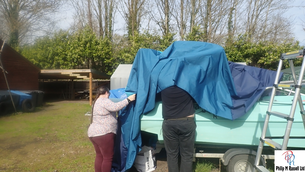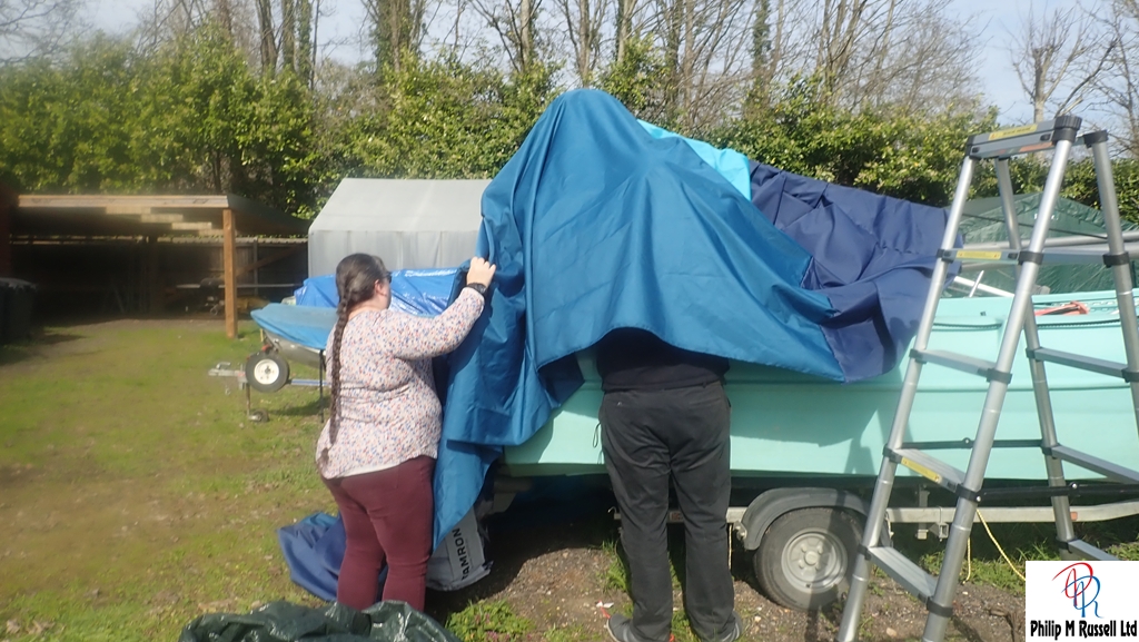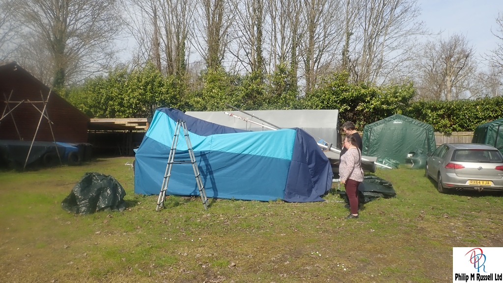 We had some fun getting the cover over the boat as it is just tacked at the moment. I await to see the developments.