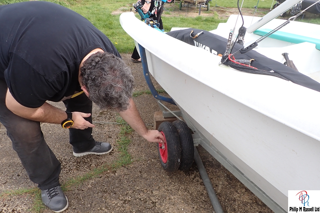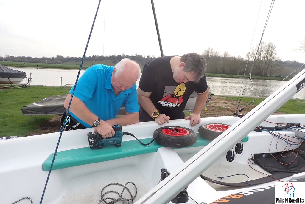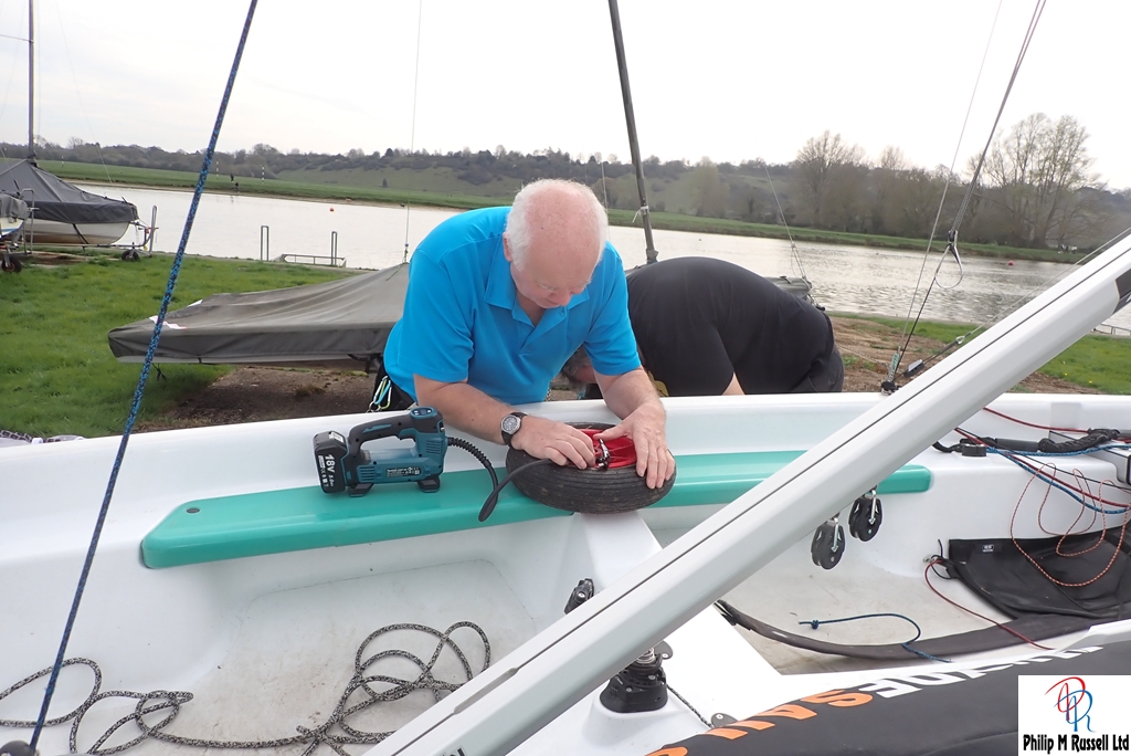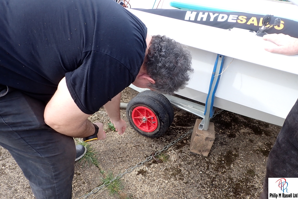 We a had a short list of jobs we could do if there was no wind. A couple of boats went out, but there was not enough wind to race so that idea was abandoned. Instead we got on with installing the Electronic burgee, inflating flat tyres and giving the Whaly boat cover a second fitting.