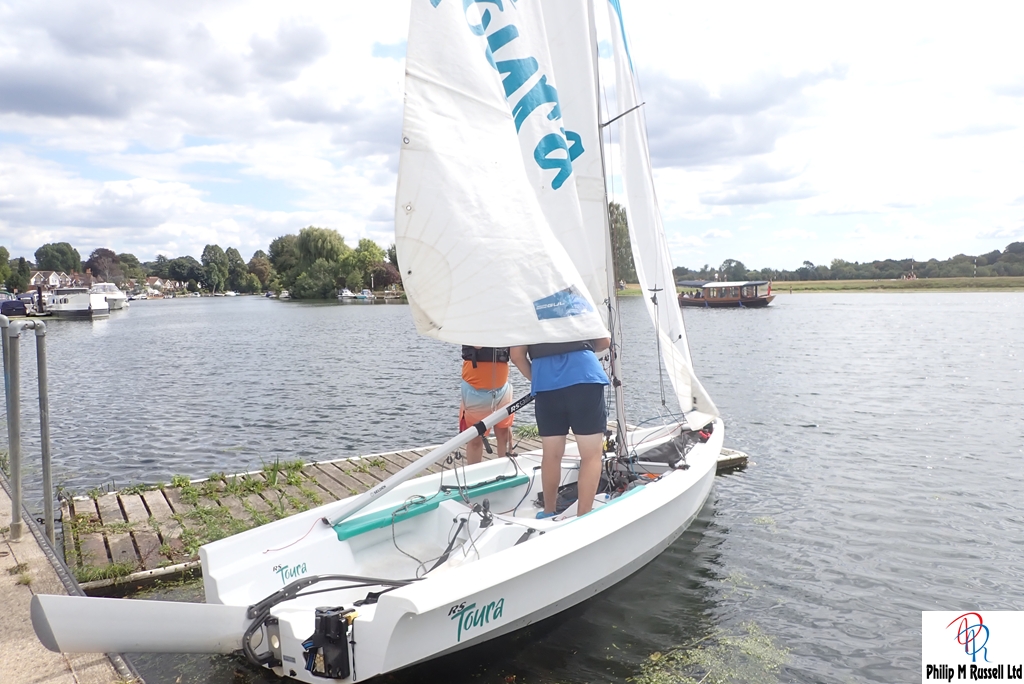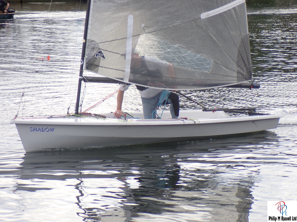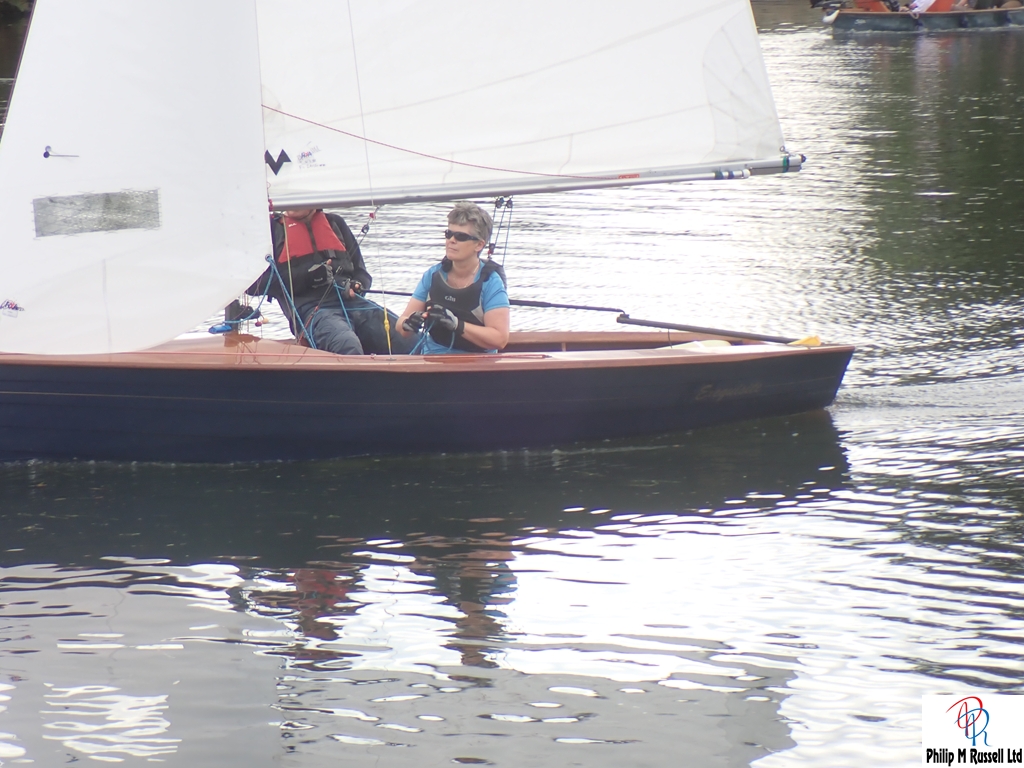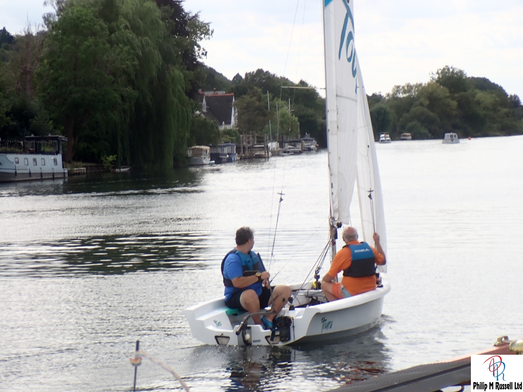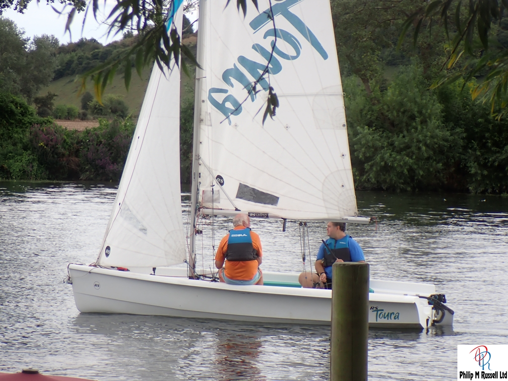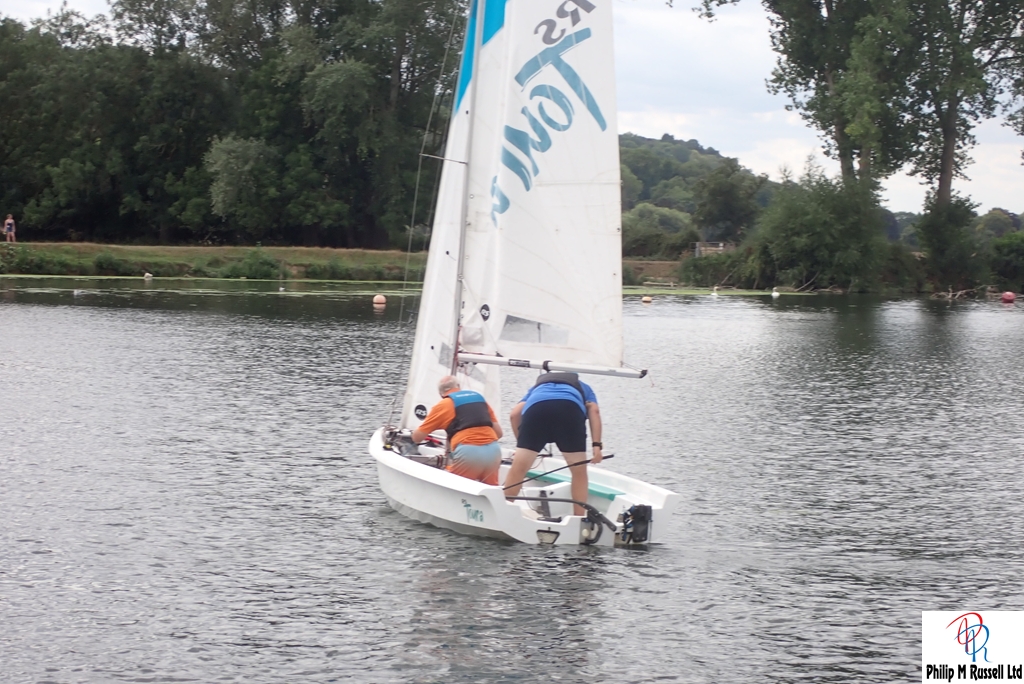 We practised our start on the five minute warning. The Wind was quite good blowing across the river, so we could sail up and down the river on the same tack. The one minute horn sounded. As if on cue, the wind, which had been doing a passable impression of “light breeze,” decided it had better things to do. Like not be here.
