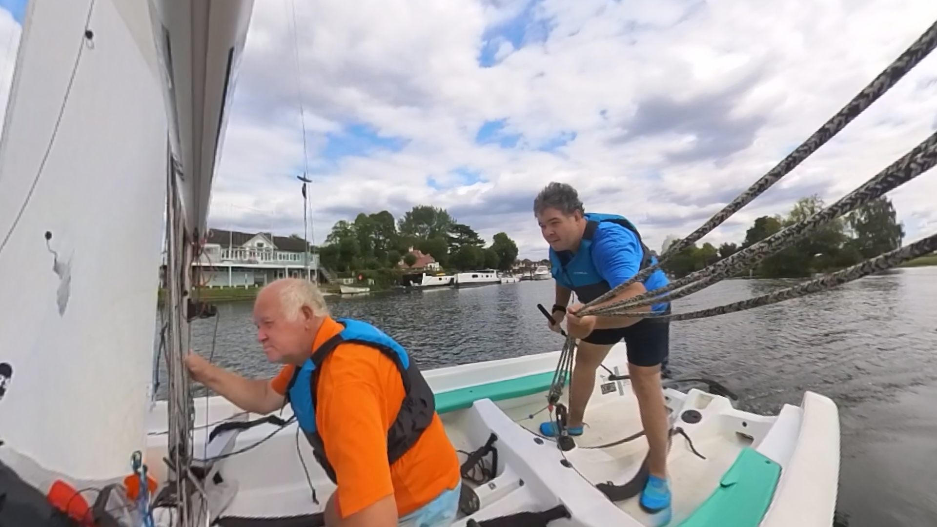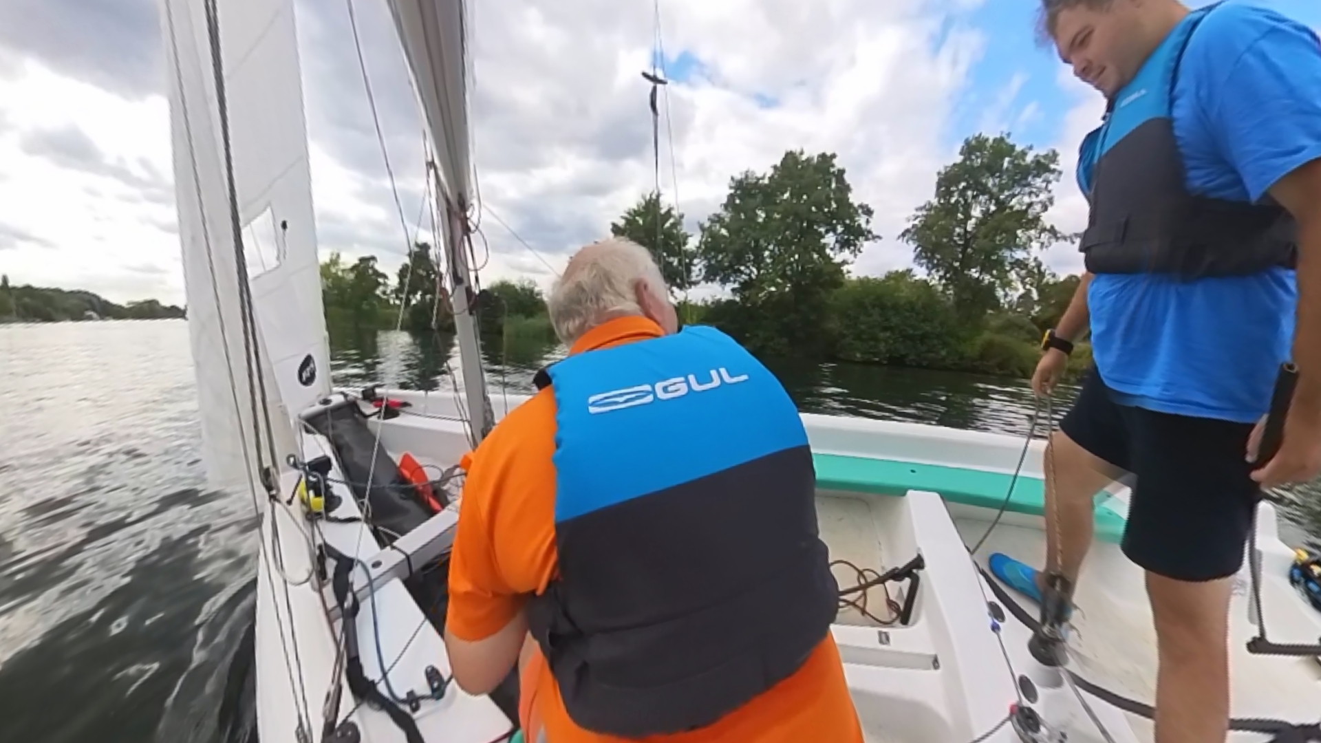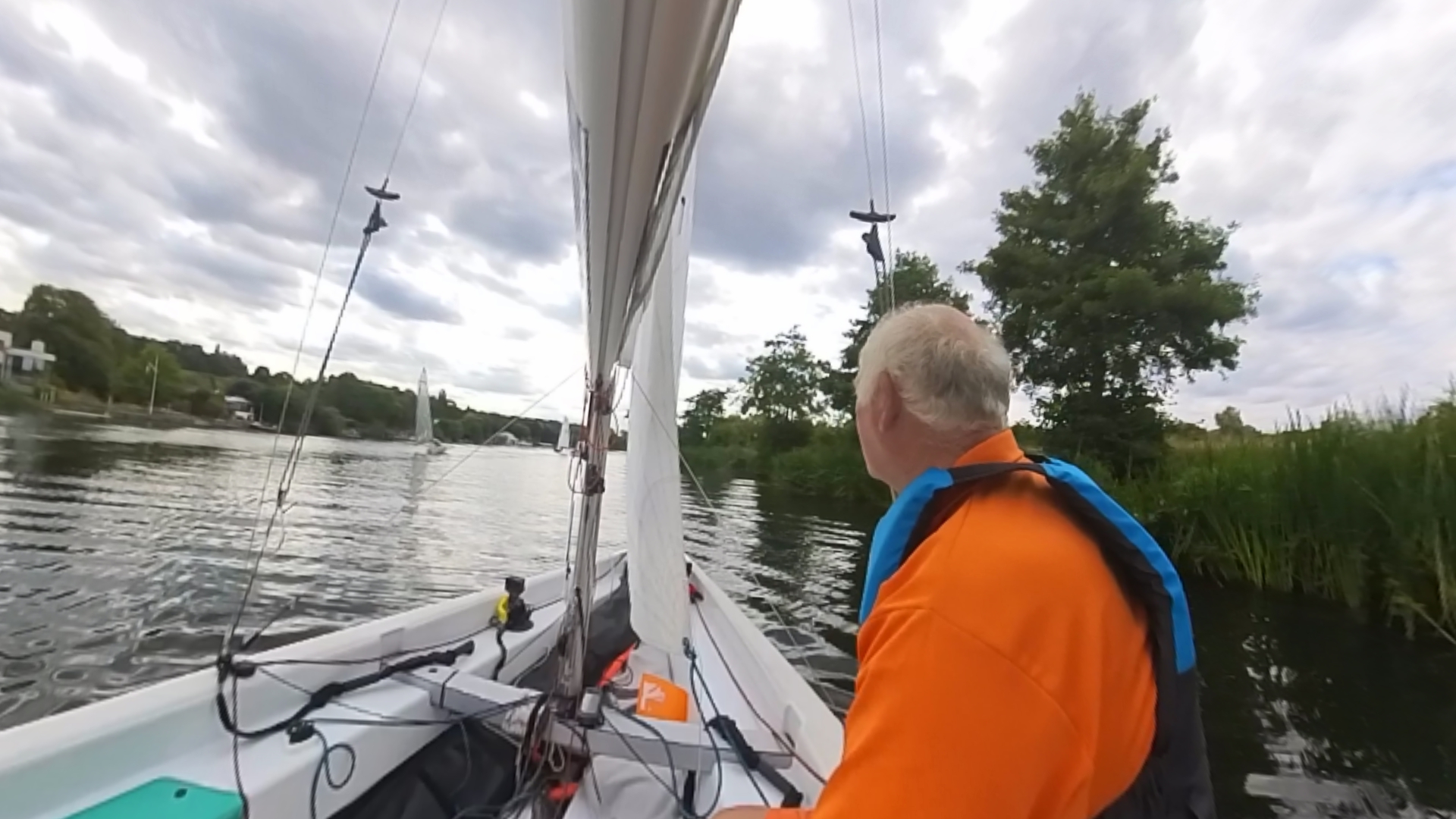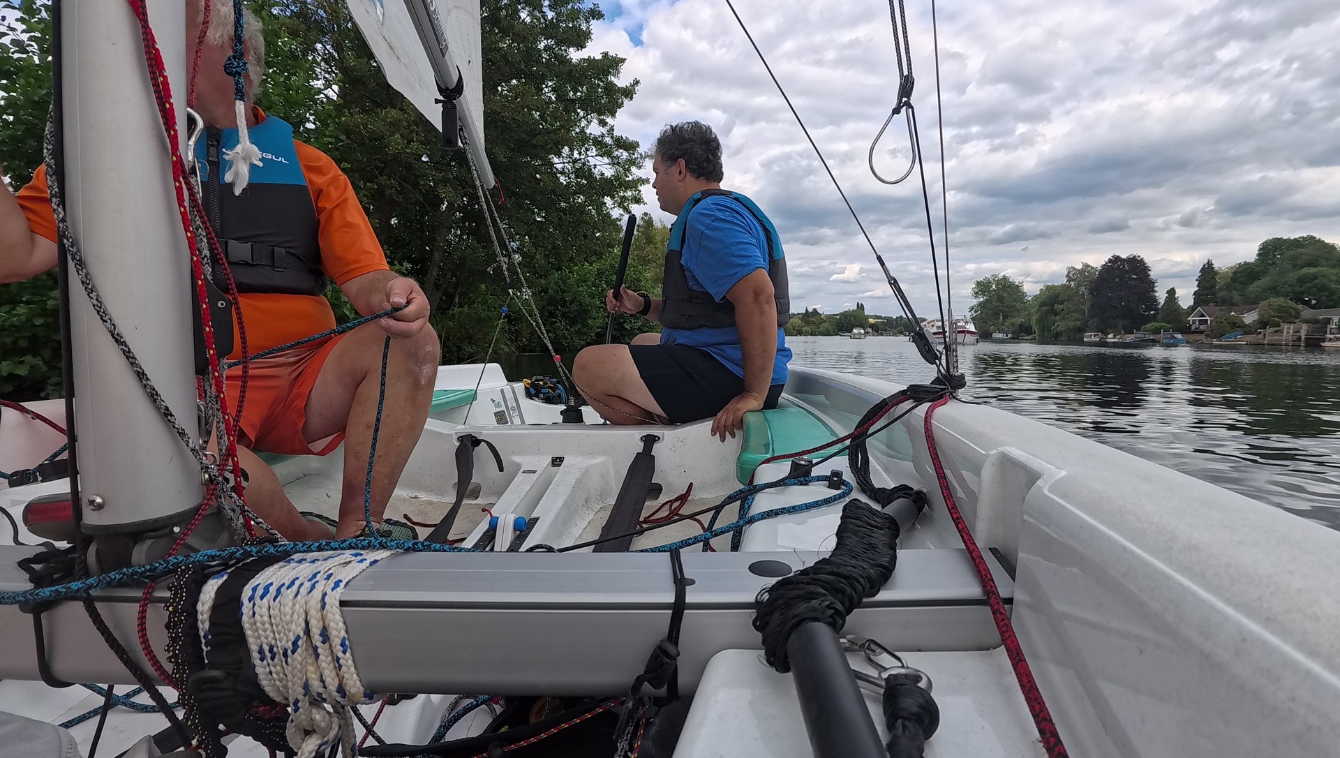 My wife, stationed upstream with a camera to capture our majestic sailing skills, had enough time to: