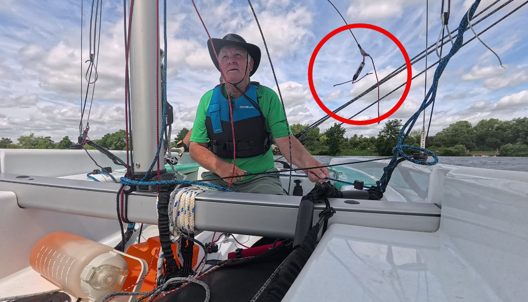 There is a gust of wind and as the wind takes us one of the ropes holding the mast up snaps.