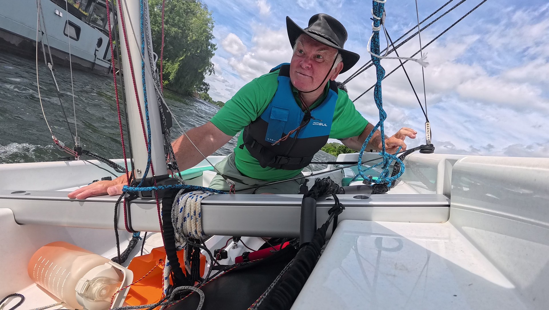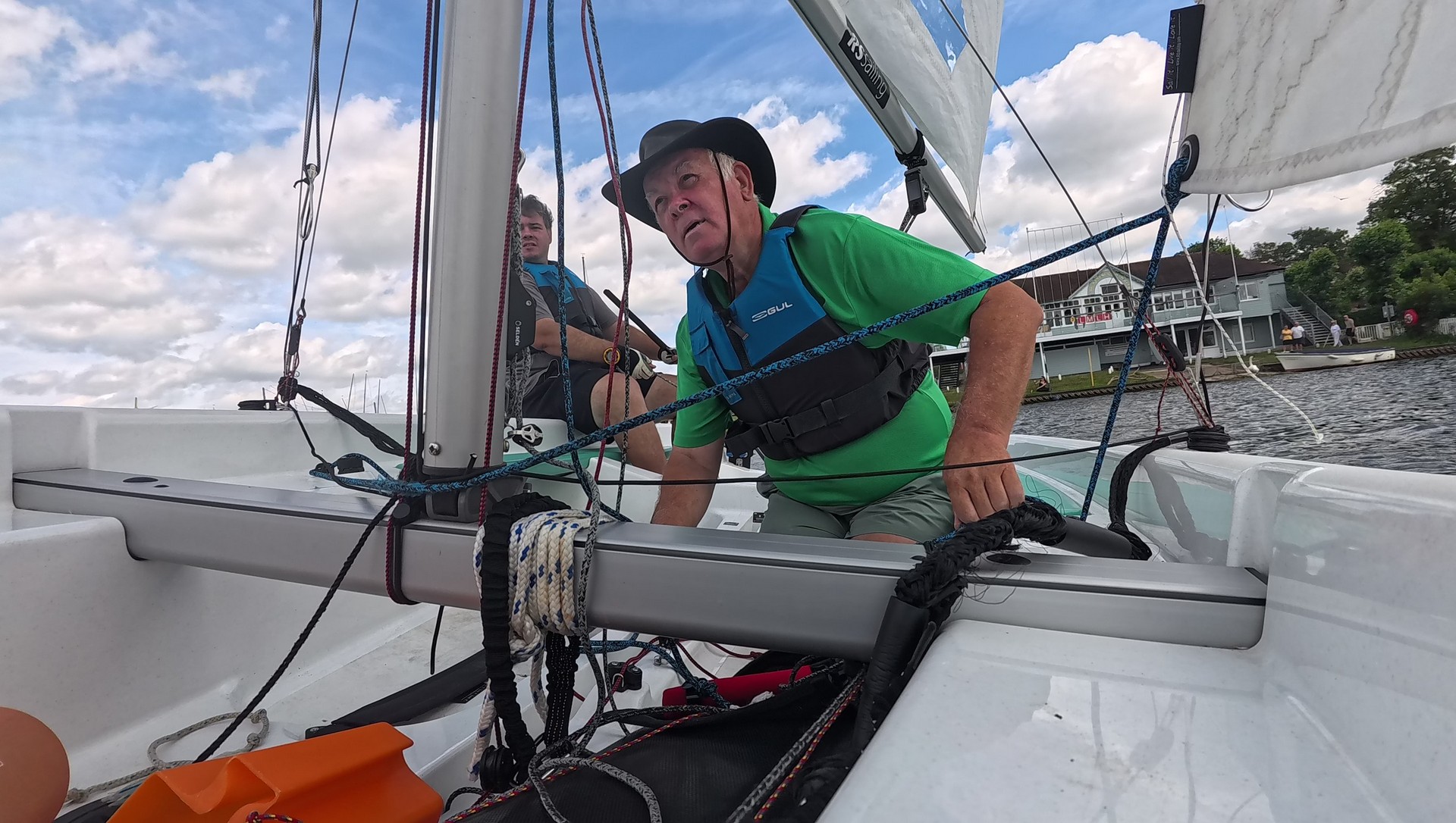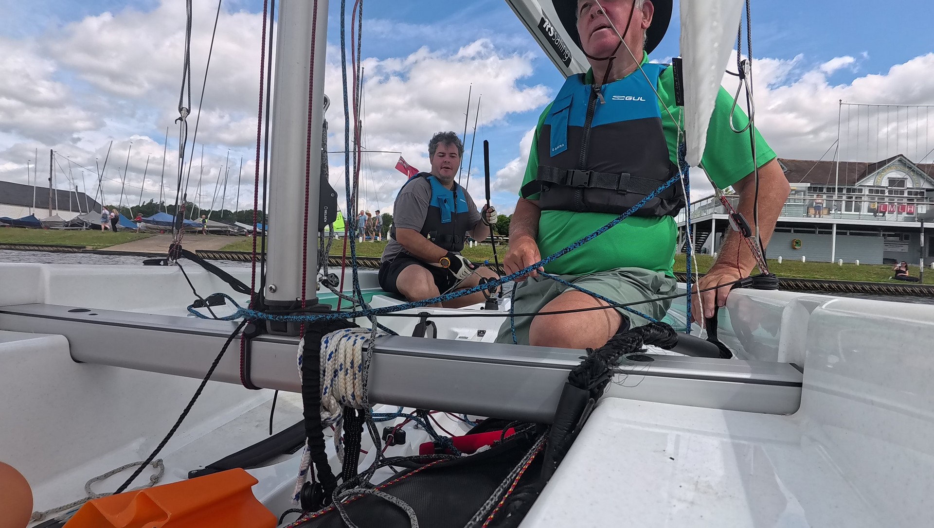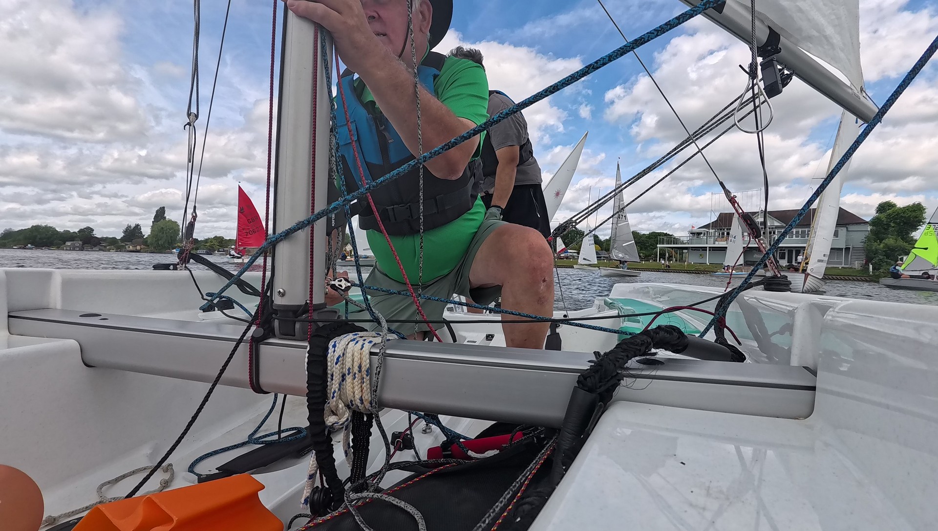 The race started so well. We were on time due to a new way of setting the downhaul, We were in the mix as the flag went down and then slowly we left the other boats behind as they sailed off into the distance and we went more across the river. But as we got to the bend in the river a sudden gust hit us