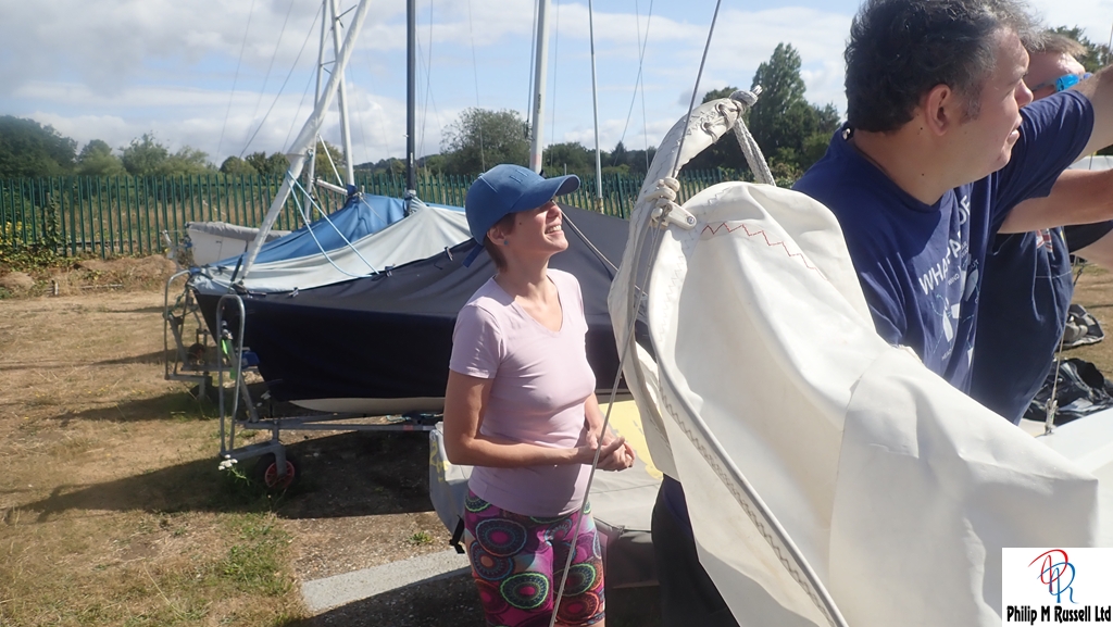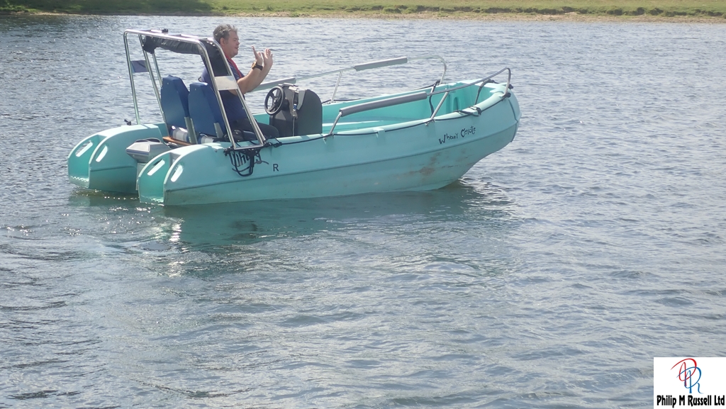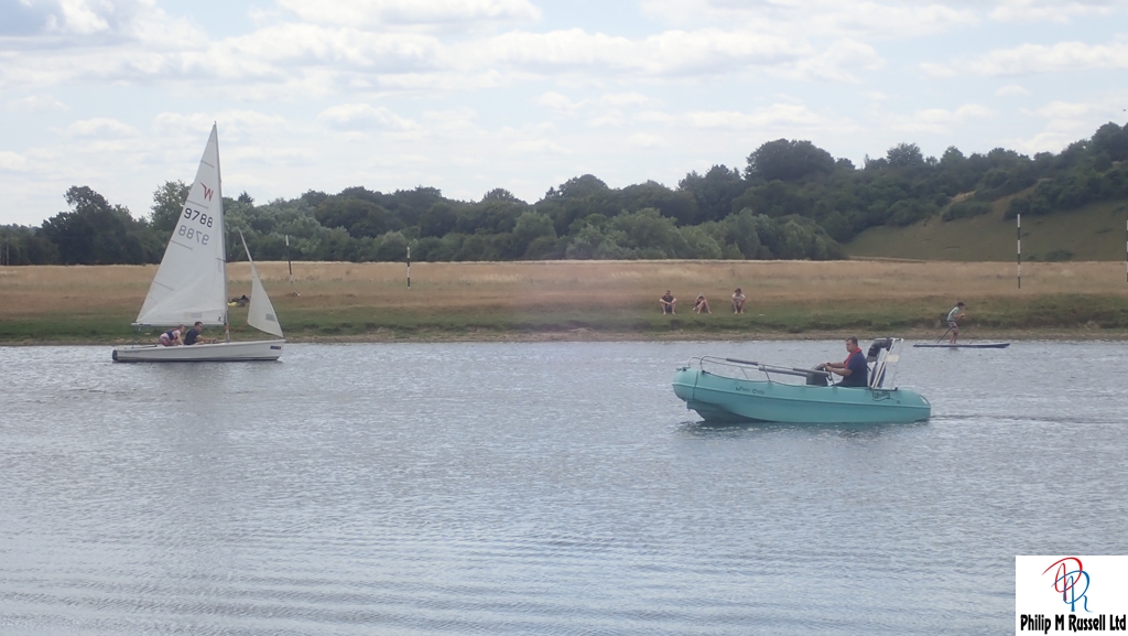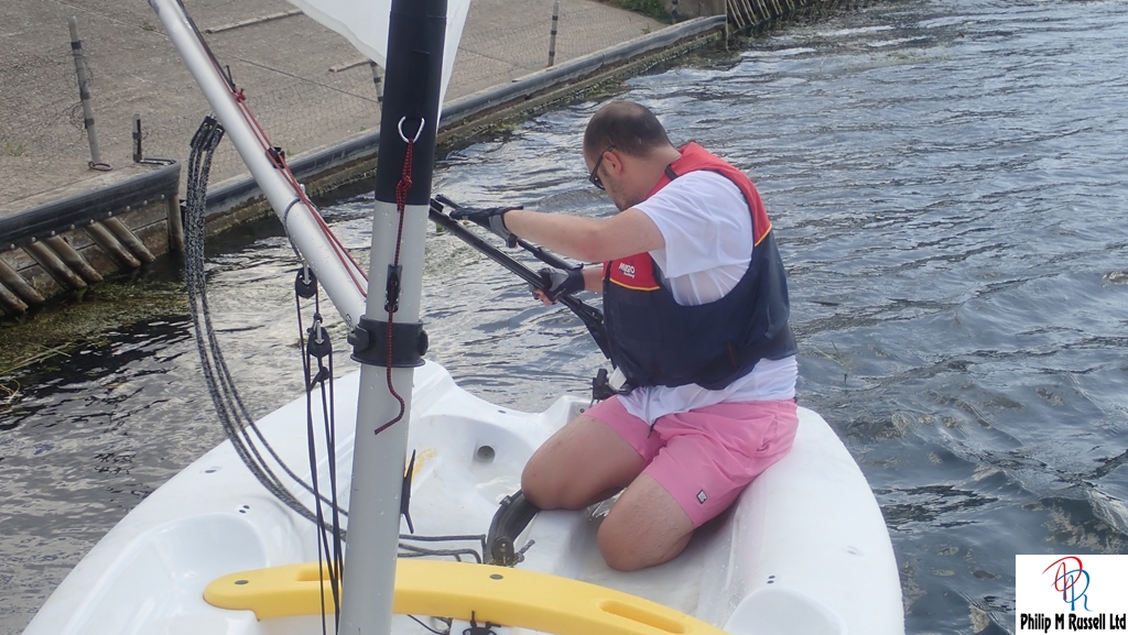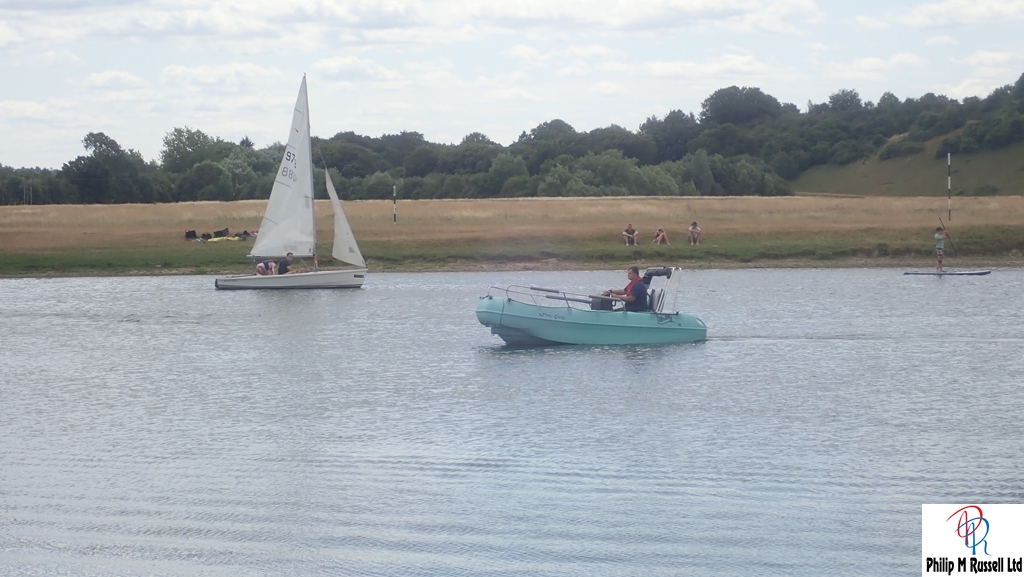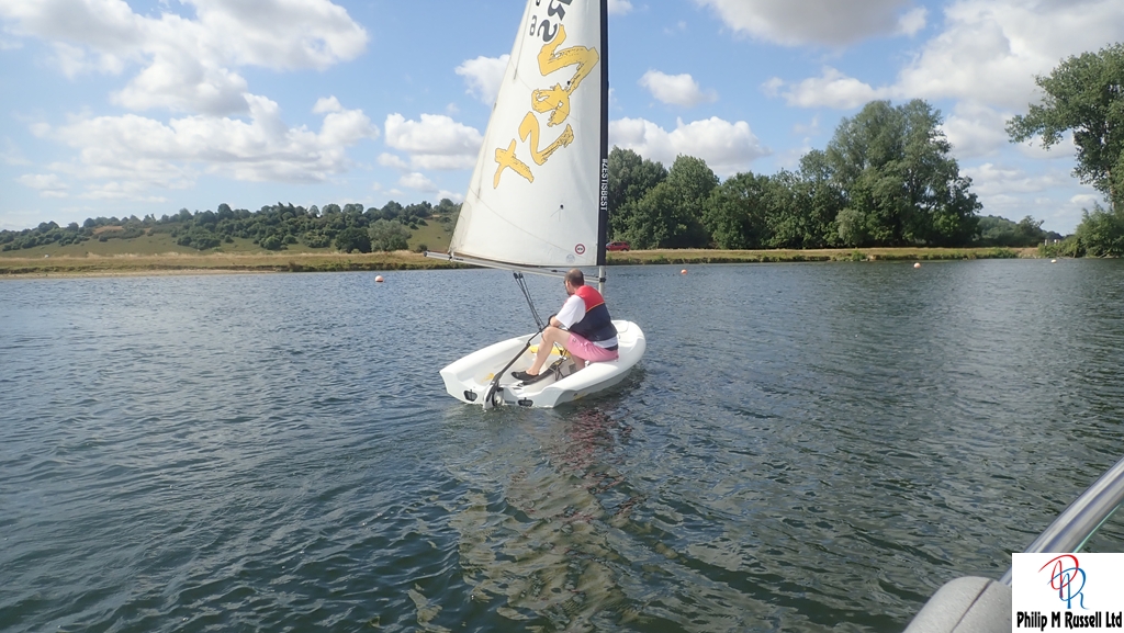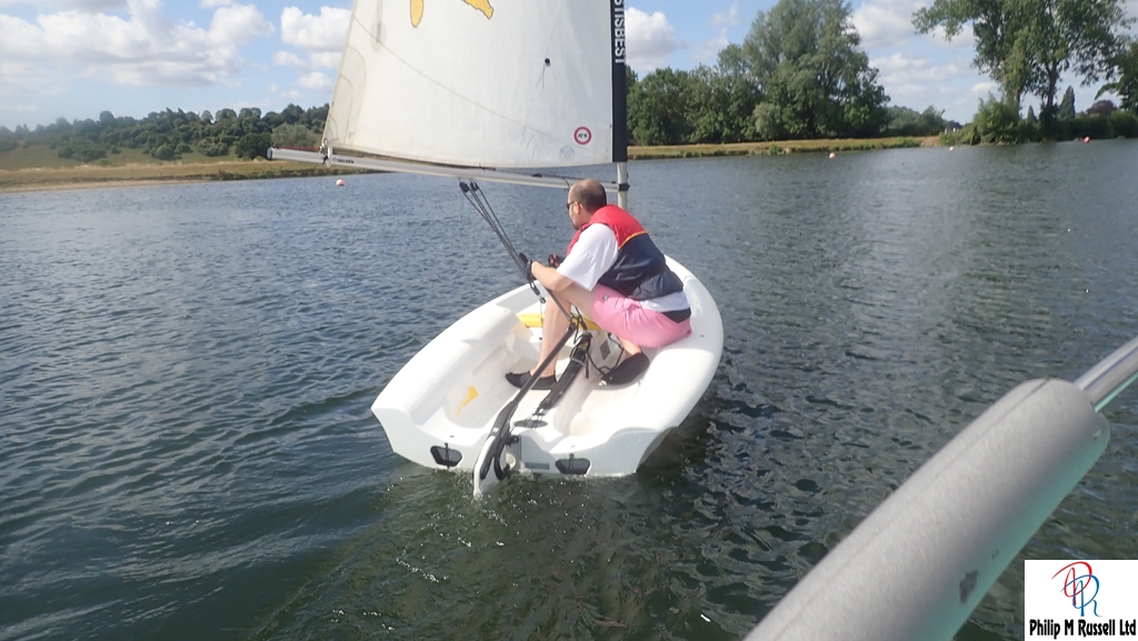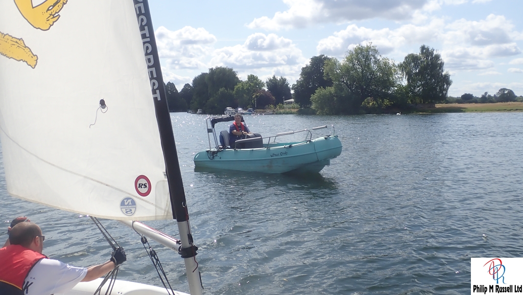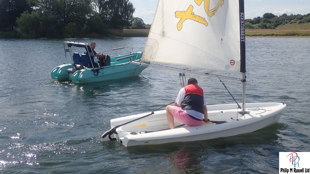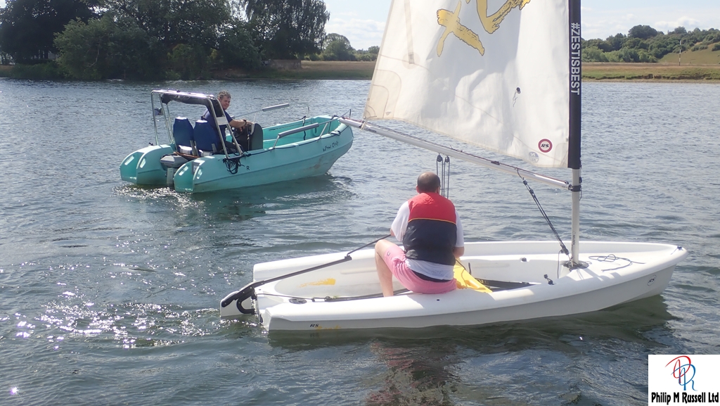 Philip was first on the scene, raring to take a Zest out and practise his gybing. Alex and Nick were rigging up a Wayfarer. John had his eye on another Zest. And us? With the Whaly afloat and bobbing gently, we slipped into our role as safety crew. Philip, keen as mustard, launched first—and rather promptly, went for a swim. His first gybe in a slightly gusty patch turned into an impromptu capsize. A soggy thumbs-up reassured us he was fine, but the wind caught the sail and plastered it across the club pontoon. I leapt from the Whaly while John jumped in from the pontoon, and between us, we got the boat upright again in under a minute, Philip was ok and back in the boat. .