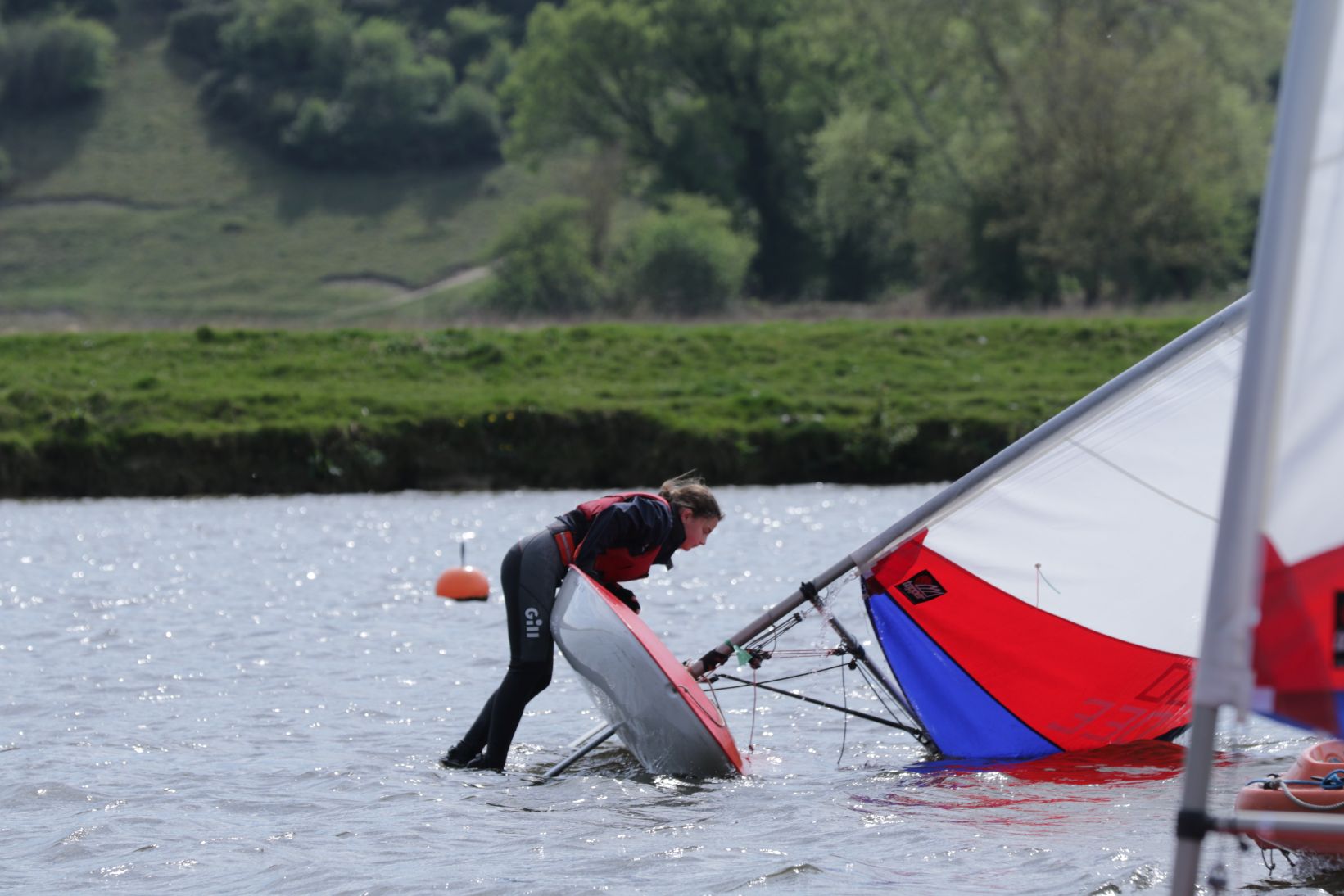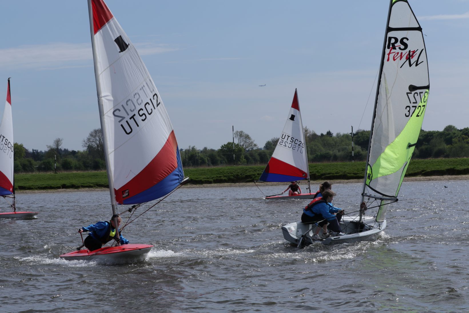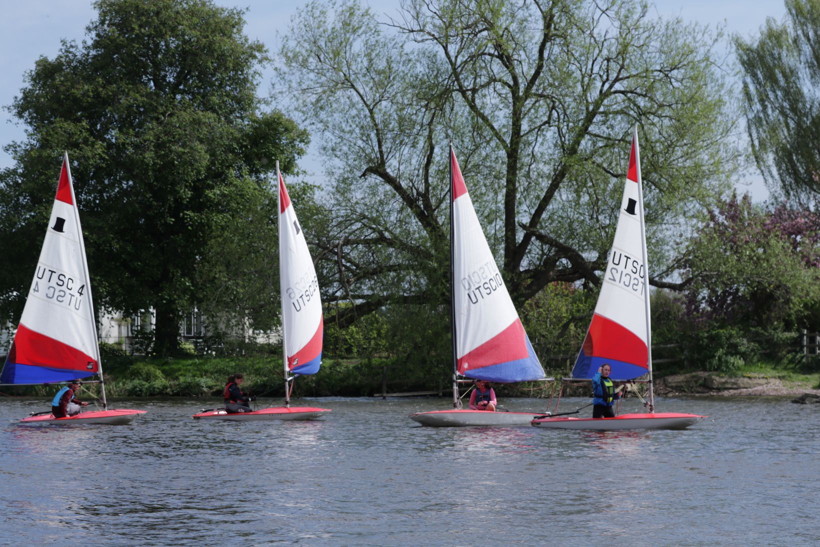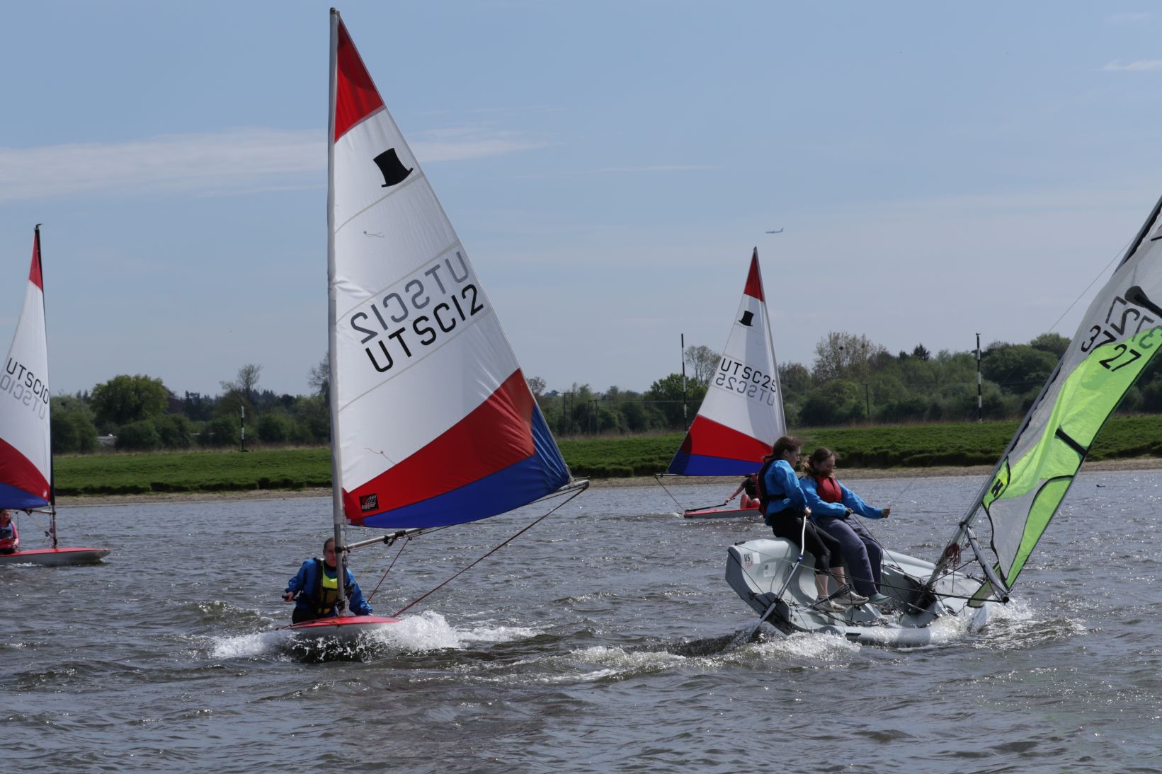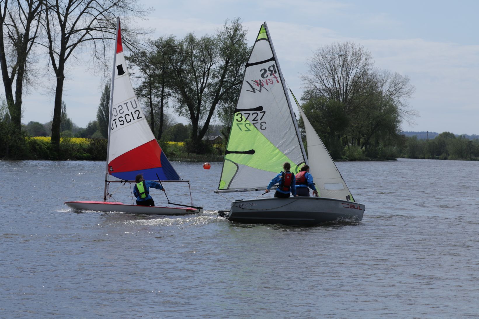 By 2pm on Saturday the 19th, nine brave Cadets had arrived for their first proper session of the year. Sunshine beamed down as if to say, “What could possibly go wrong?” After a brisk safety briefing and some good-natured faffing with rigging lines and buoyancy aids, the flotilla launched into a surprisingly fresh breeze.