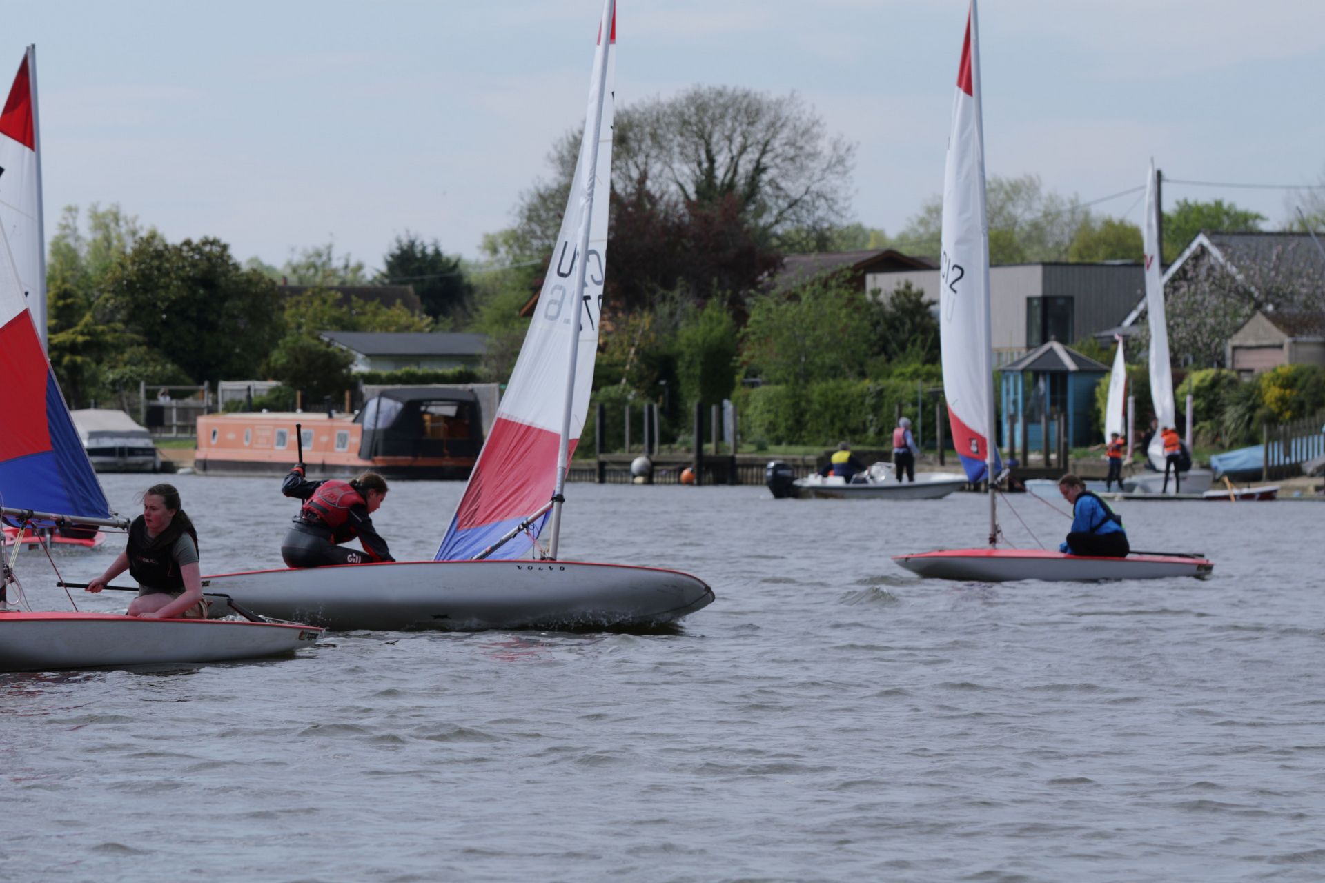 Seven Toppers, one Feva, and an Optimist hit the water. The aim? Some fun sailing, course re-familiarisation, and ideally keeping the pointy end facing forward. The reality? Capsizes galore, squeals of joy (and the occasional shriek of surprise), and the general chaos that only a group of enthusiastic Cadets and a frisky wind can produce.
