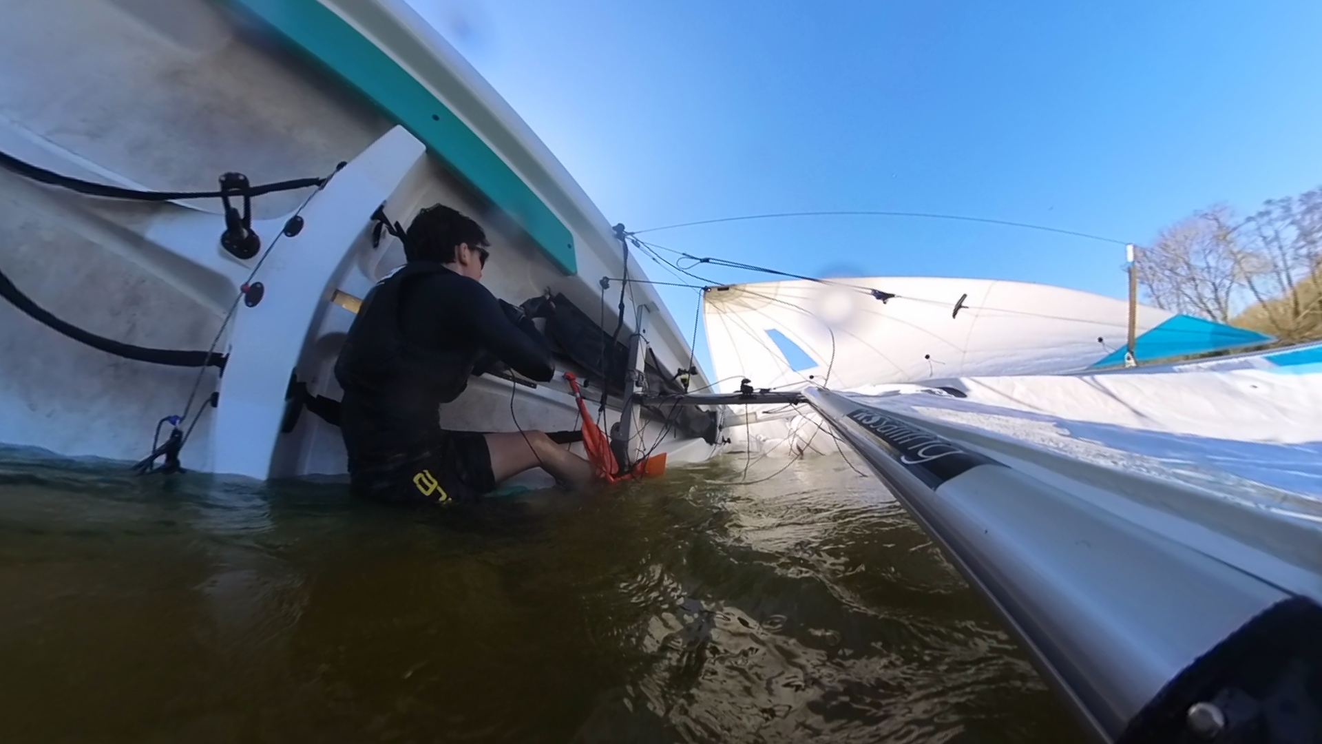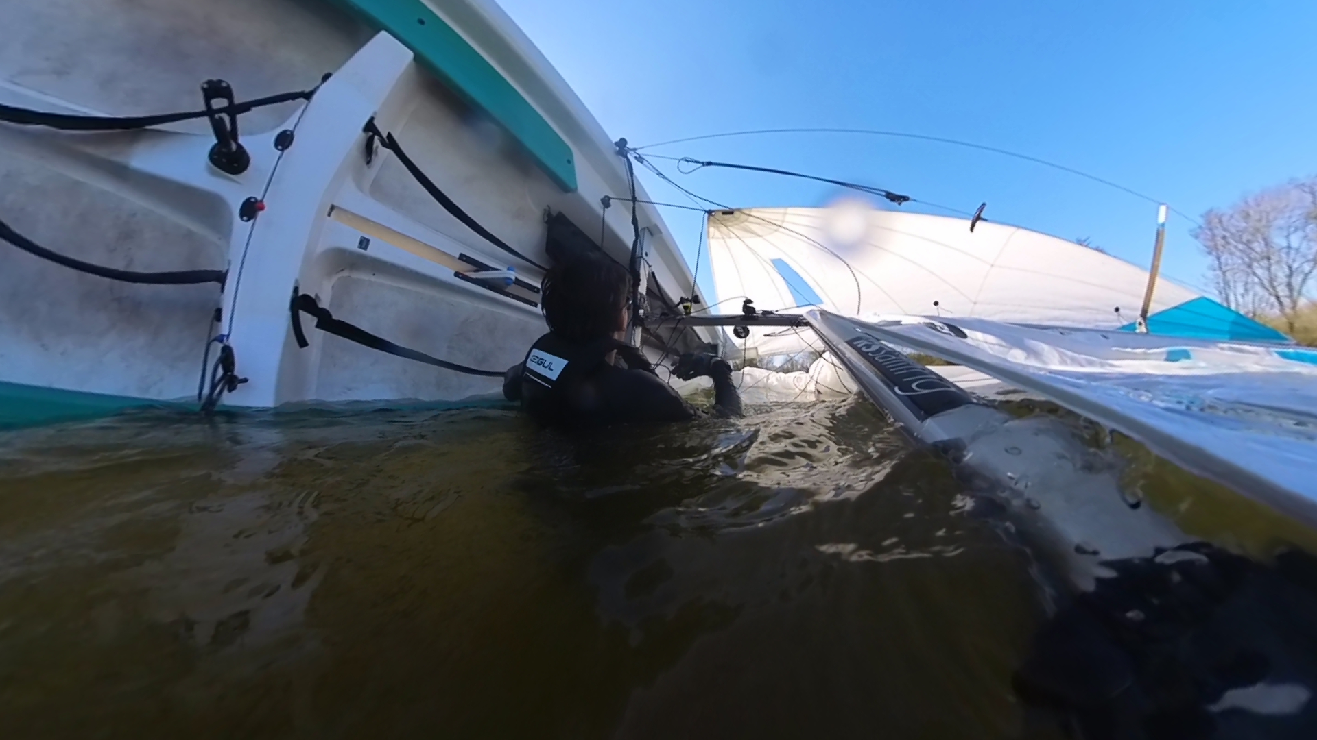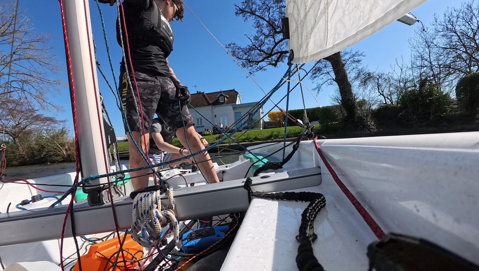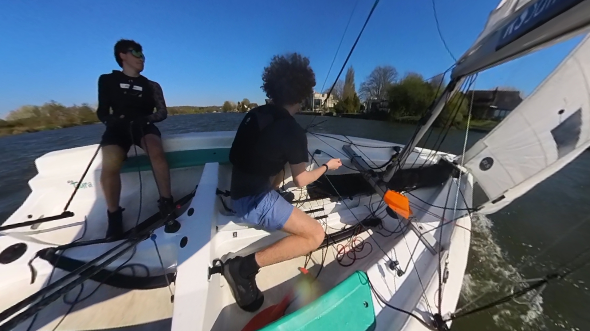 Dan noticed we had a spinnaker and was keen to deploy it in these gusty conditions. We hadn't used the spinnaker and the only time we had used it was on dry land on a RYA1 course when we were looking at the different types of sail. The sail did not deploy well and so the boys moored on a private jetty with the owners laughing at them fixing the sail.. Once fixed they sailed up the river at speed.
