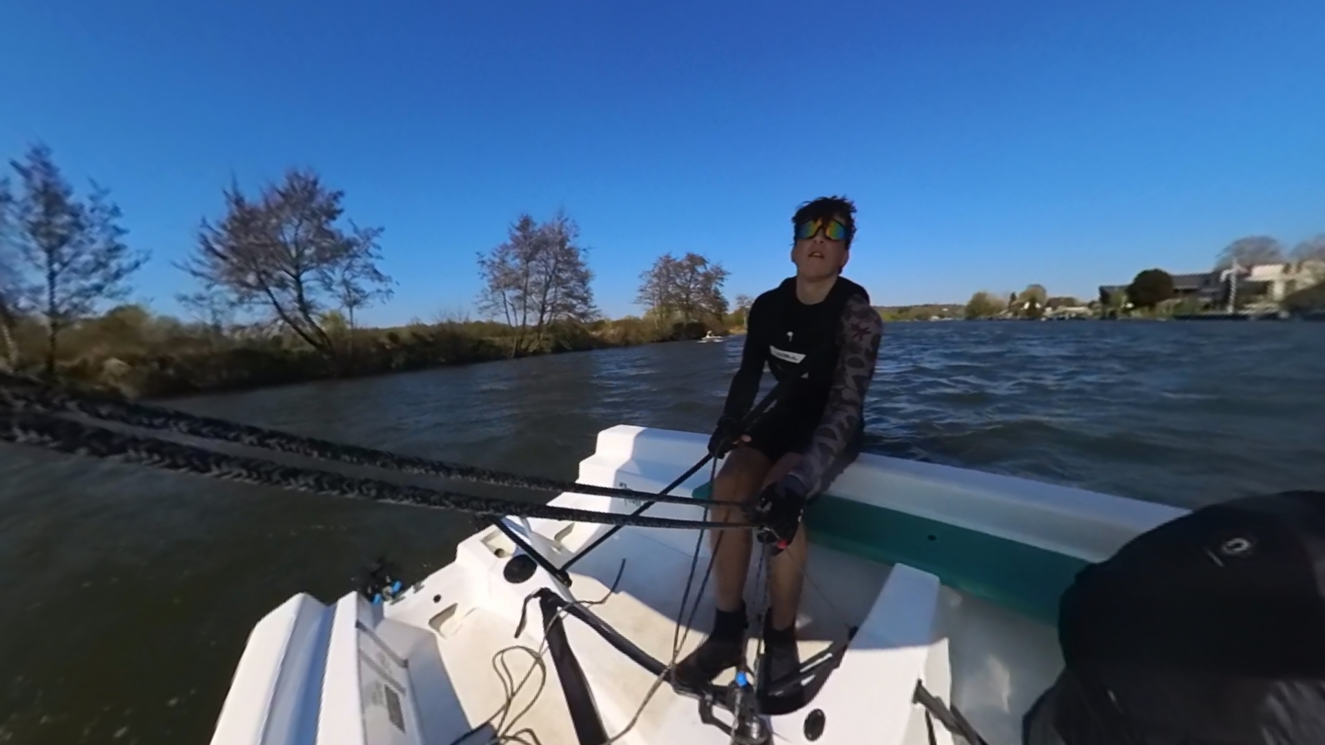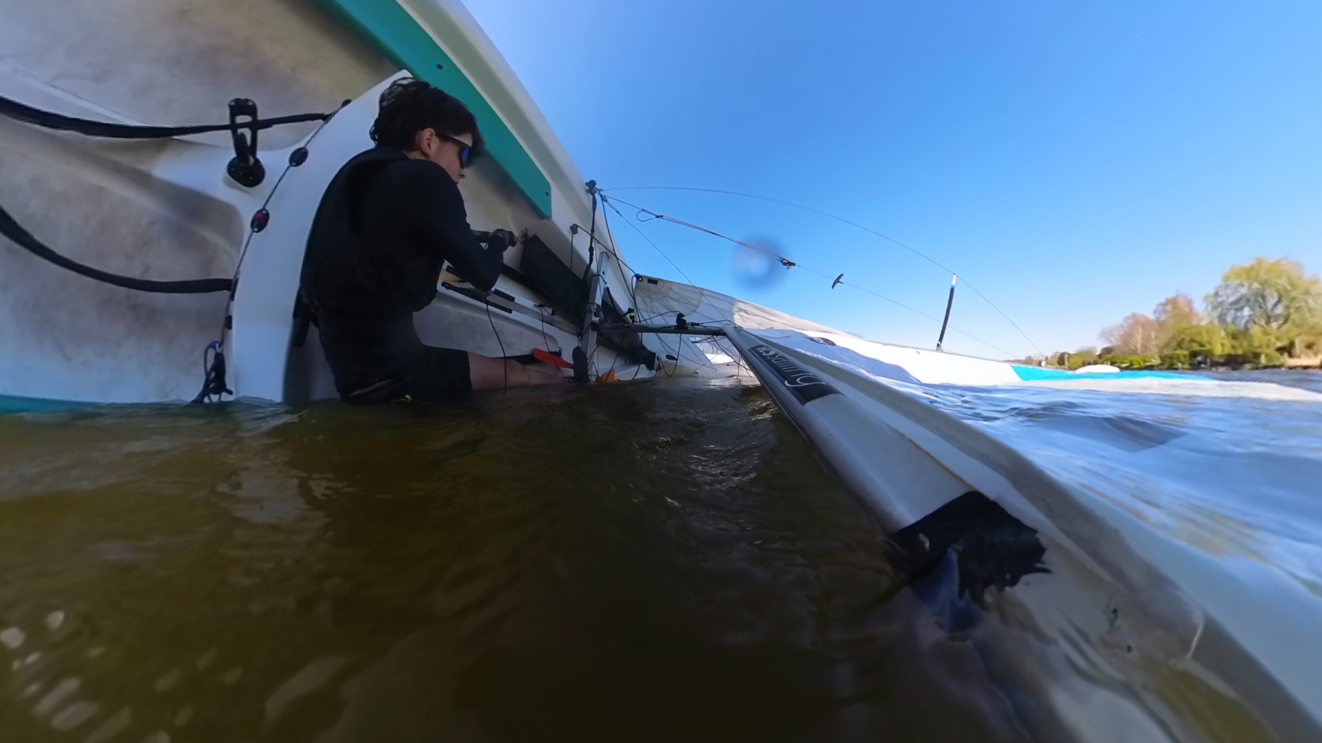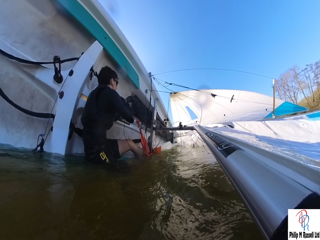 Daniel, one of the Cadets at the Club, had just taken Paul and me out to help us learn to read the wind - I'm sorry, but that failed, and to learn to hike out - which succeeded. He really loved going out in the RS Toura. It has everything - A spinnaker and a double trapeze, so my Wife and I suggested that he take out the boat with a friend, Callum, who was on the safety boat that day. I swapped with Callum, so I went out in the Safety boat and Callum and Dan took the RS Toura for a spin.