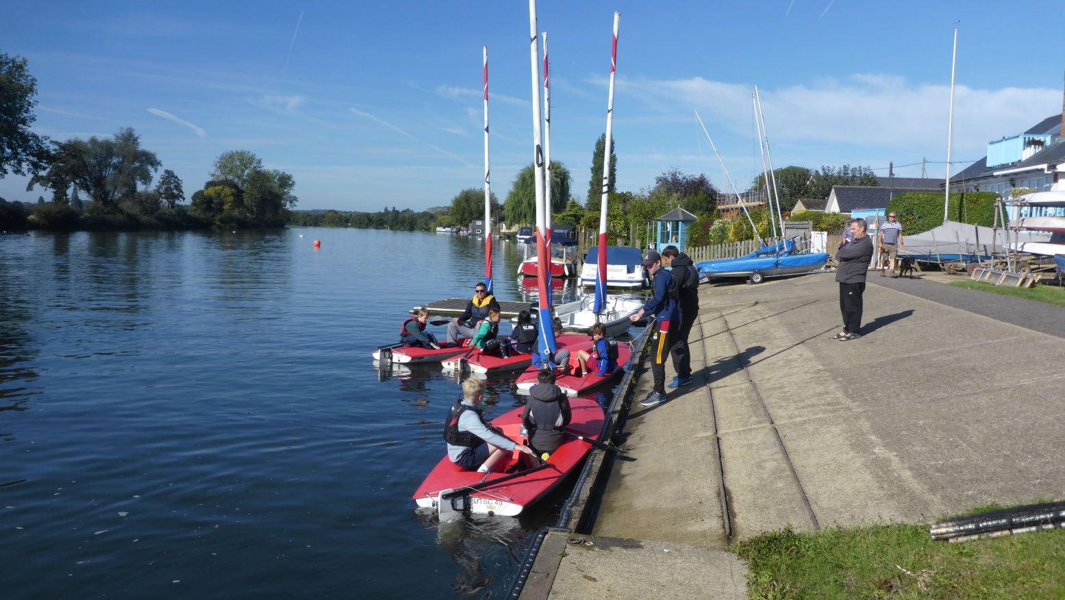 The first group started with knot-making, where they mastered the art of tying the reef knot, two half hitches, and a figure of eight knot. Once they’d perfected their knots, they learned how to rig a Topper sailboat, before heading out in Tigress V, sailing up and down the river. Paul, channelling his inner Titanic, quizzed the young sailors on what they'd learned so far, making sure they grasped the basics. Meanwhile, another group took to the Toppers, towed upriver before paddling their way back to the club with confidence. The final group stayed on shore for a land drill, where they learned how to sit in a boat properly and practice tacking techniques before heading out in the RS Zests for some on-water practice. Thanks to the light wind, the Cubs were able to sail safely across the river and back, closely supported by two safety boats that ensured everyone stayed on course.