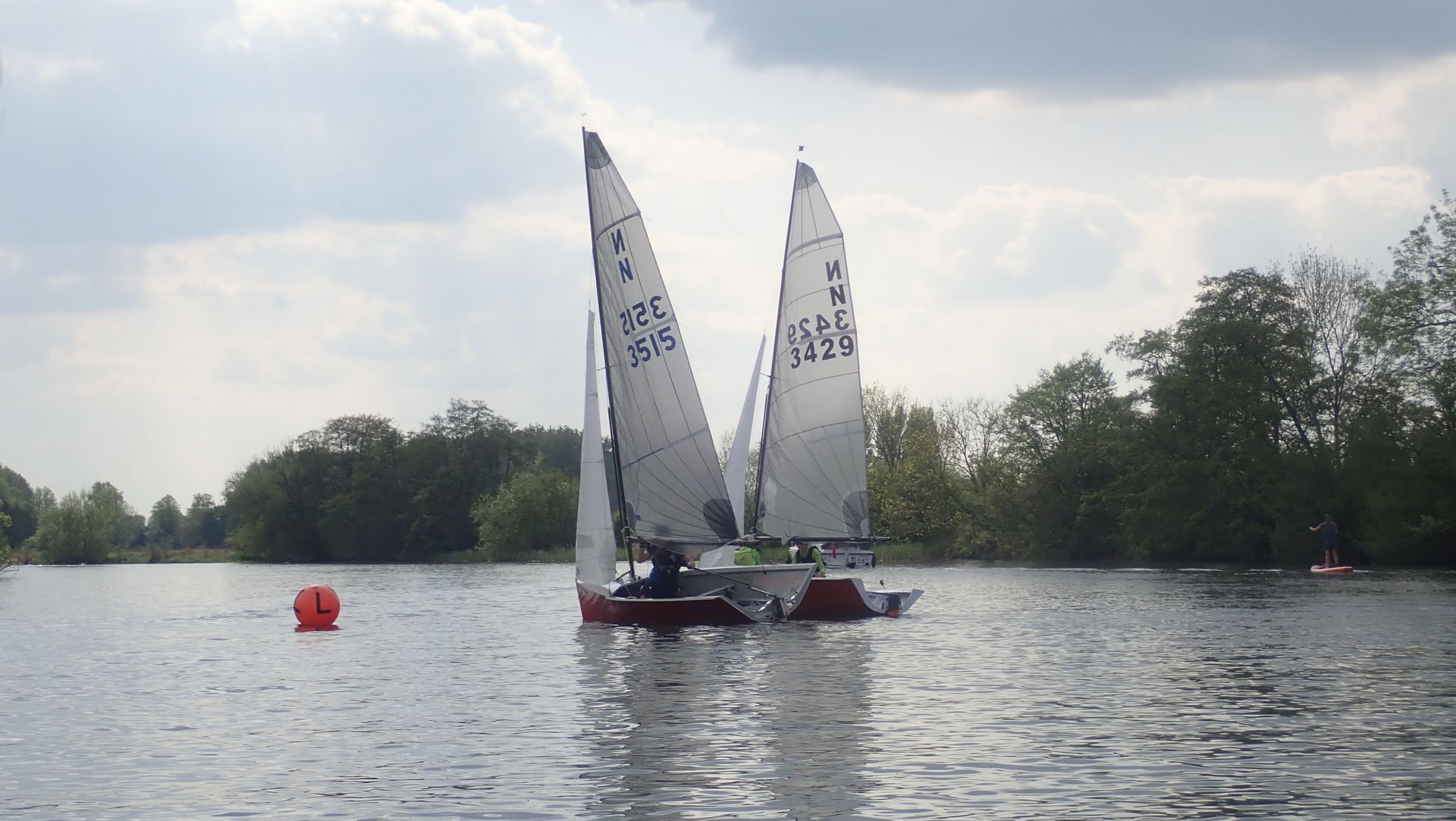 Teams started to arrive and by 1:50pm, Carina was ready for her first race of the season, Helmed by Dan with Simon on the jib. The sun was out, and the occasional breeze was warm and light. For much of the morning the anemometer had barely moved but now an occasional force 1 was blowing from many directions.