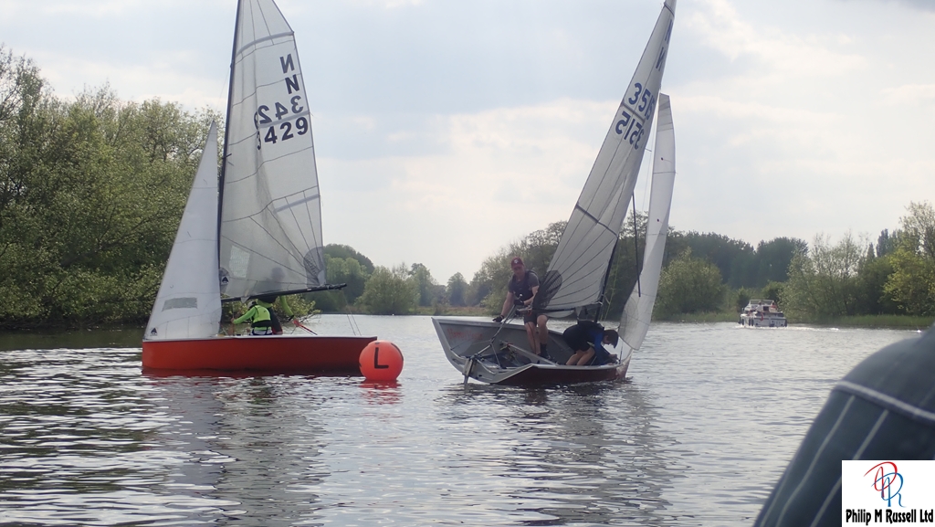 At 2pm the two14ft boats started and began strongly as the breeze increased slightly with Chris and Sonya Rathbone taking an early lead over Guy Jacobs and Lyla.