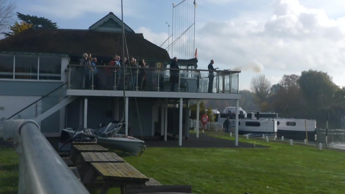 Part of the Tradition of the Upper Thames Sailing Club is for members to gather on the club balcony at 11am and to fire the canon to signify two minutes silence and to lower the Union Flag.