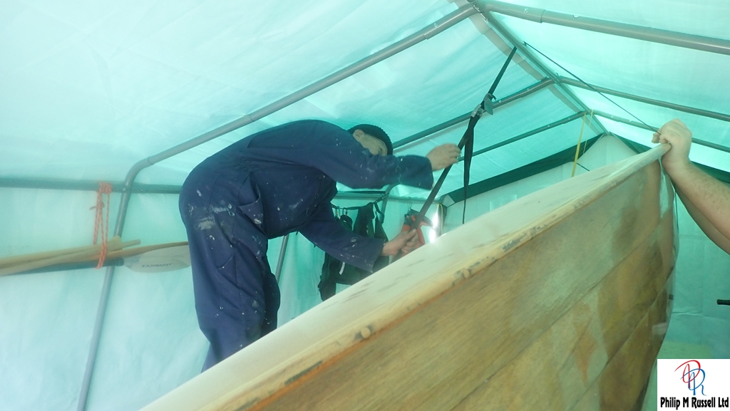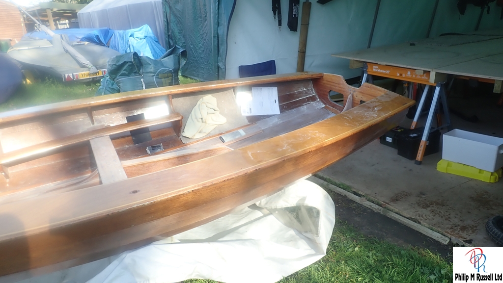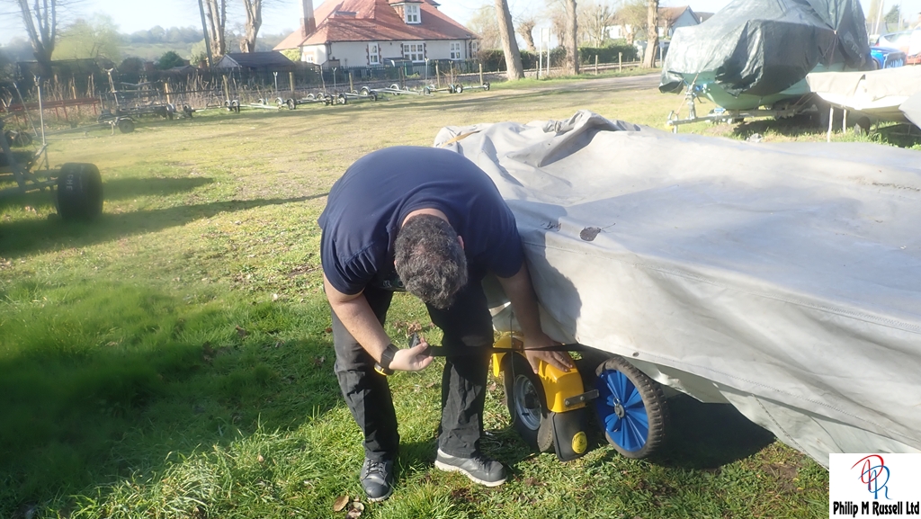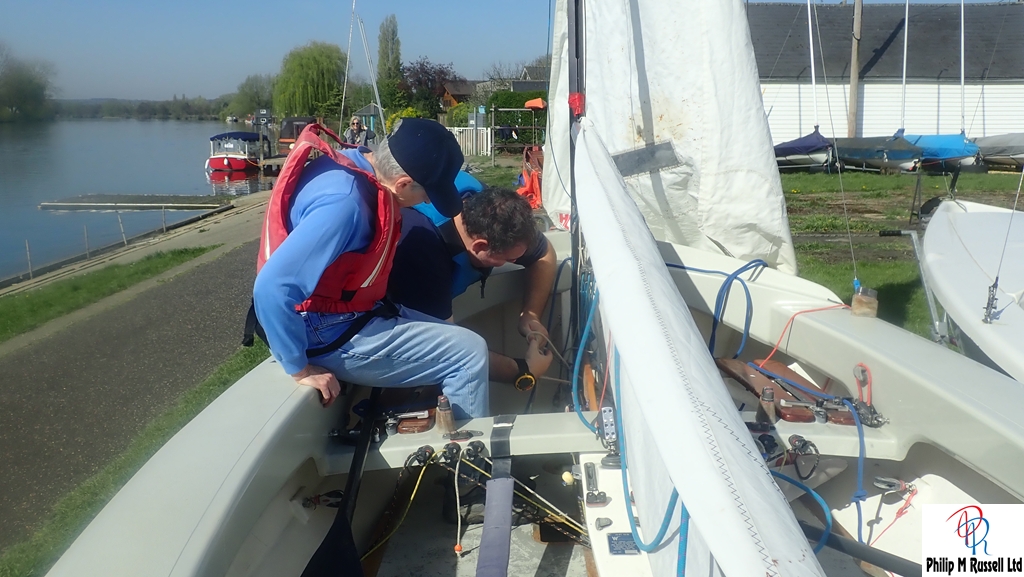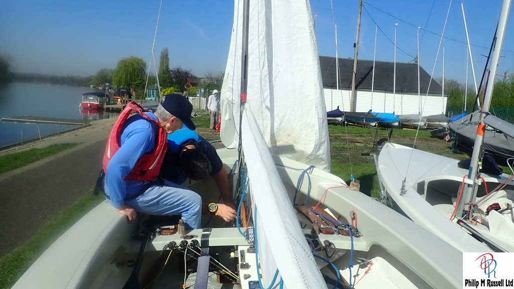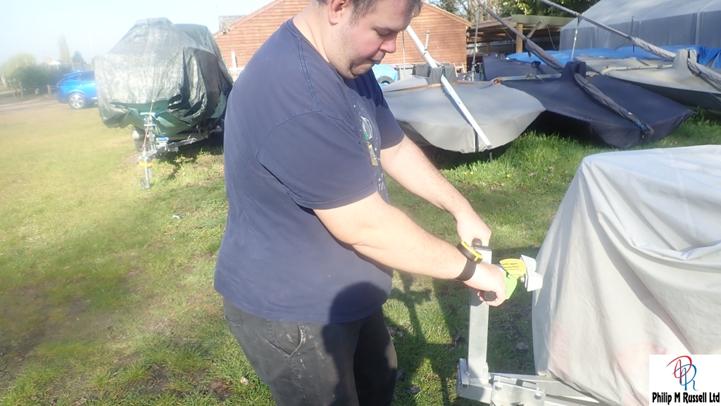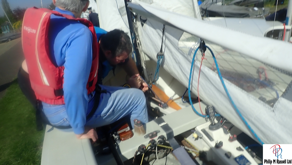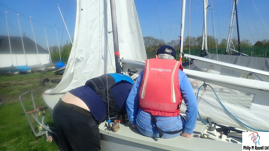 Guy needed help moving Lady Luck, his Merlin Rocket, out of the repair tent and onto a trailer so he could take her off and learn the dark art of varnishing.