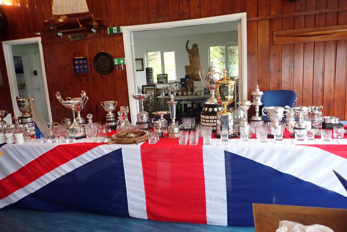 The Upper Thames Sailing Club amassed a large collection of Silverware Prizes to give out to the 2024 prize winners. The silverware was returned by the previous year's winners and put on display in the clubhouse for the 2024 ceremony of presenting the prizes, ready for the new winners to take them home for another year.
