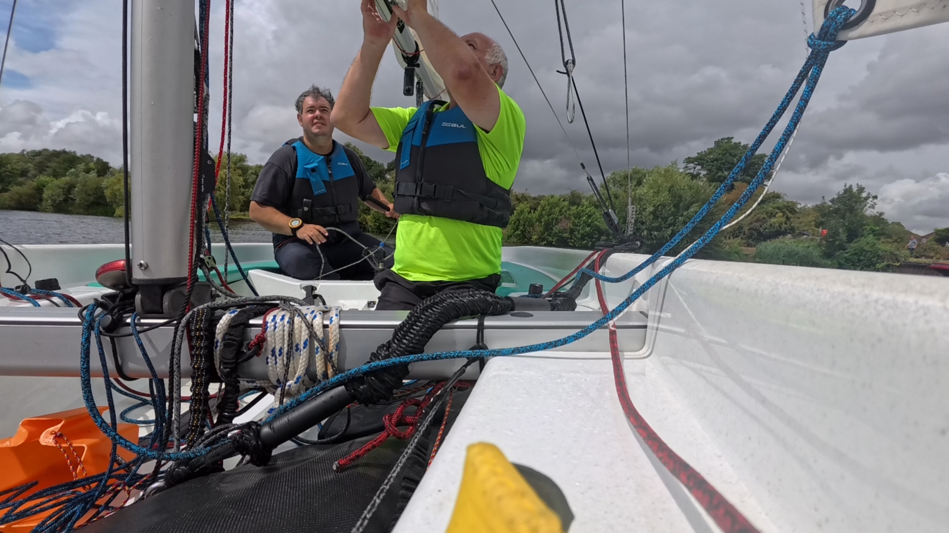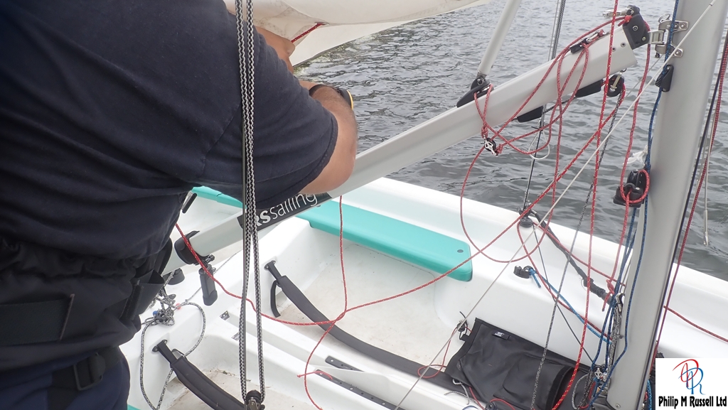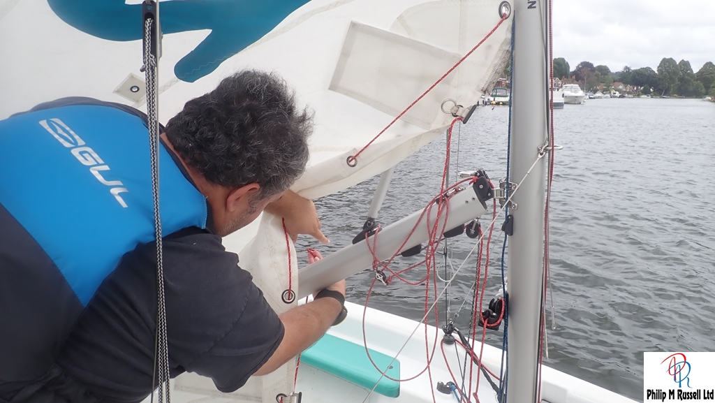 We are told that this boat can reef the sails whilst it is going along. Tat is way above our level of sailing. The wind was getting stronger so we decided to reef the sails to make it less frightening for Paul on the helm.