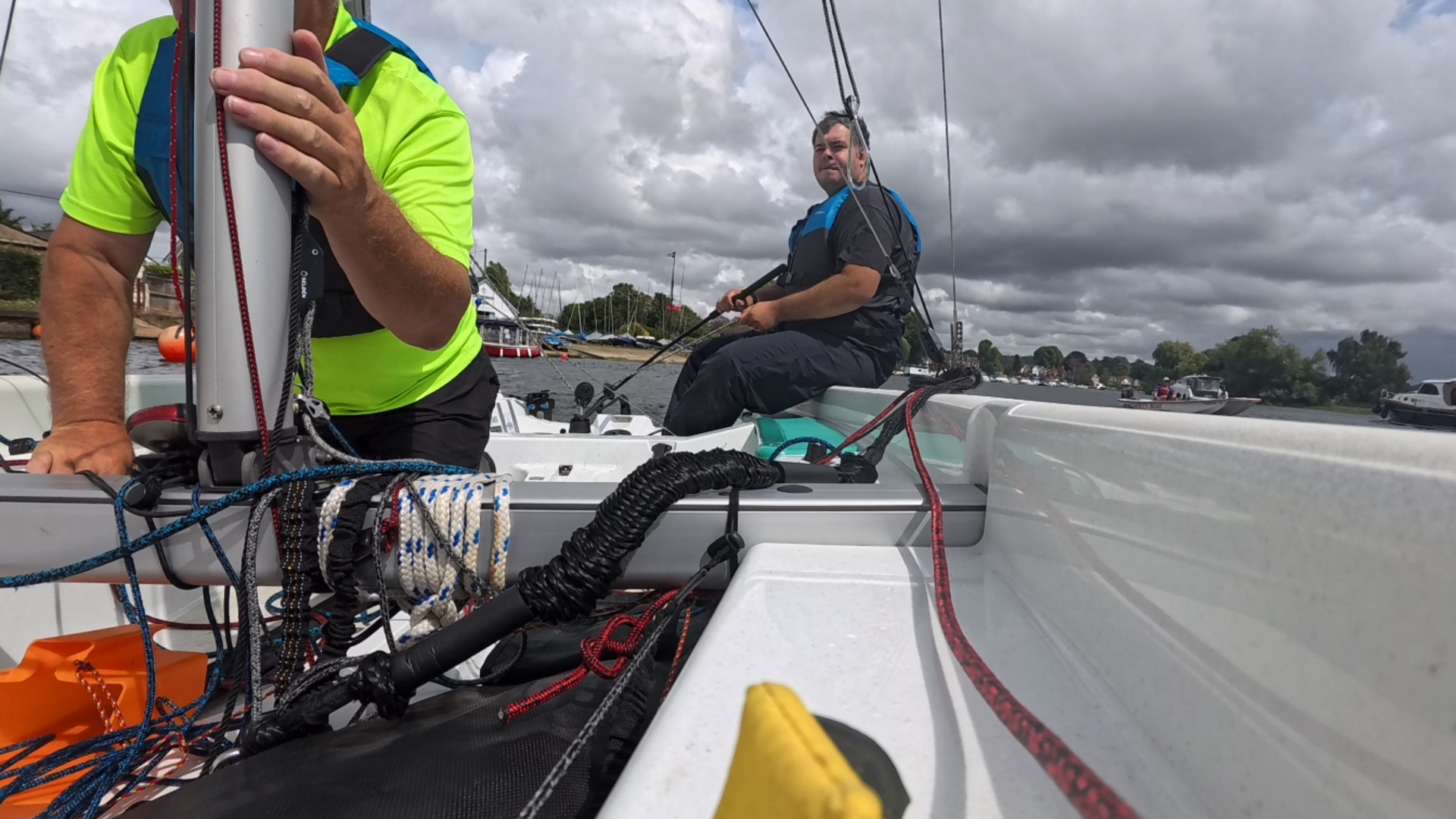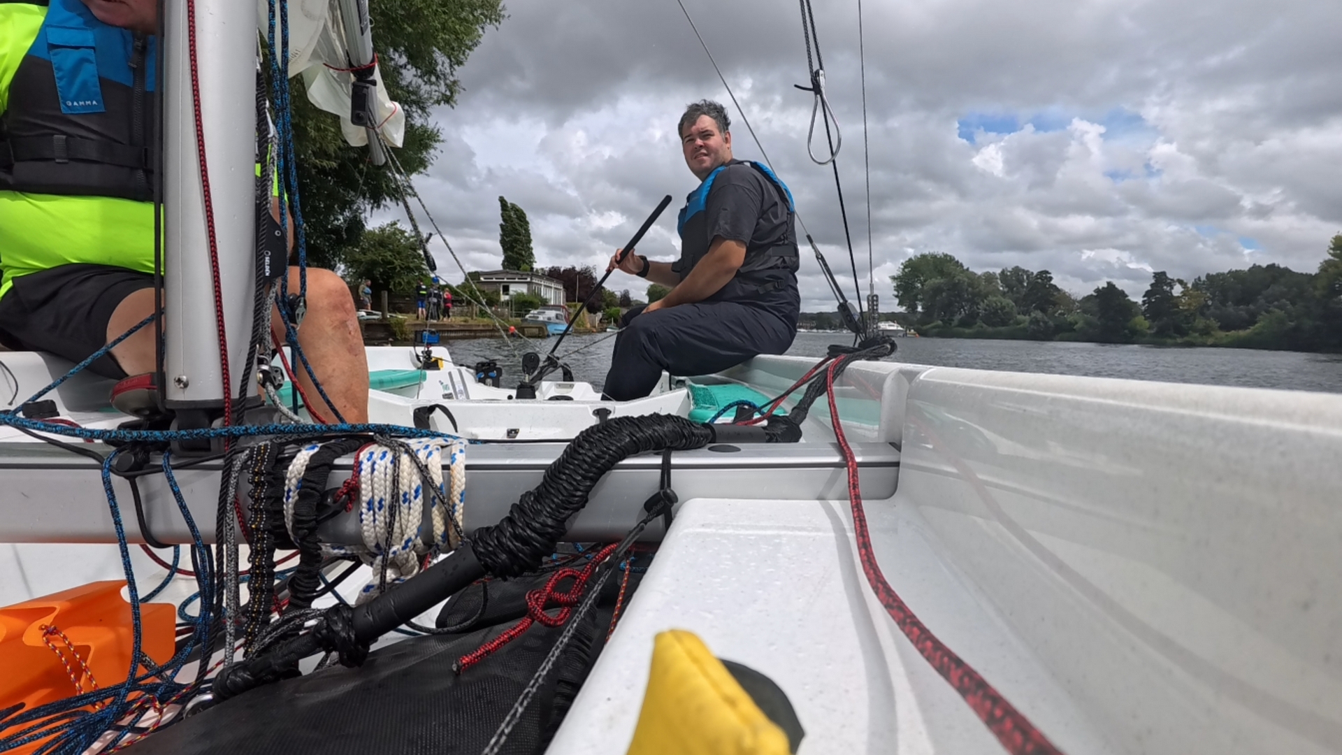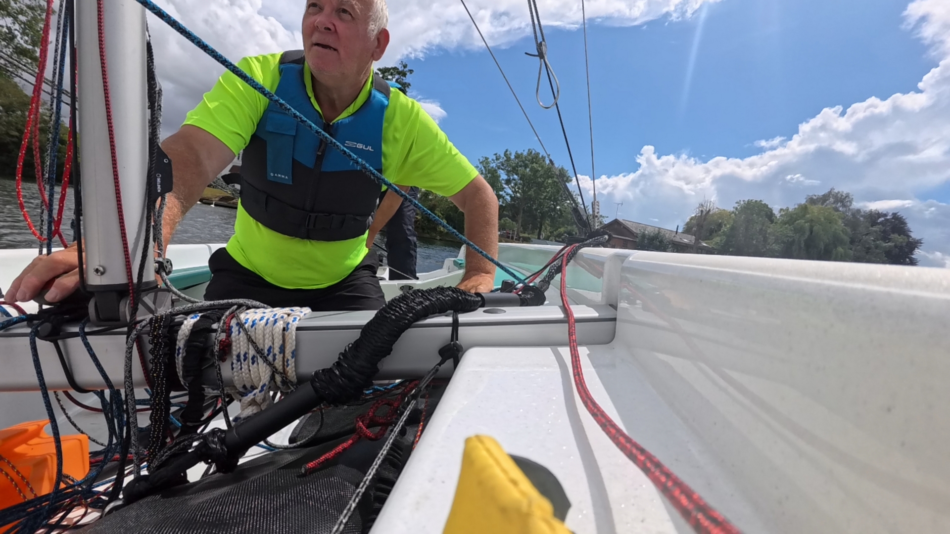 The wind was across the river from the far bank at 7.9 mph at the start gusting to 11.9 mph. ( crews for a host of different boats turned up and prepared their boats for the Summer Series races 3/4 on the River.