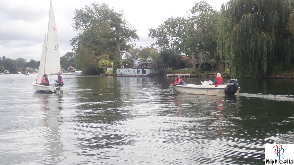 Wednesday Morning, Paul and I were in the safety boat, patrolling quietly on a training day, while Sally — retired senior instructor, seasoned sailor, and unofficial keeper of calm — took charge of the chase boat duties.