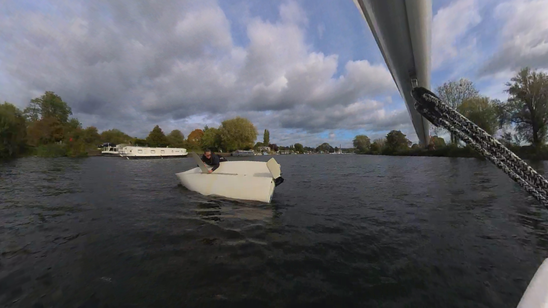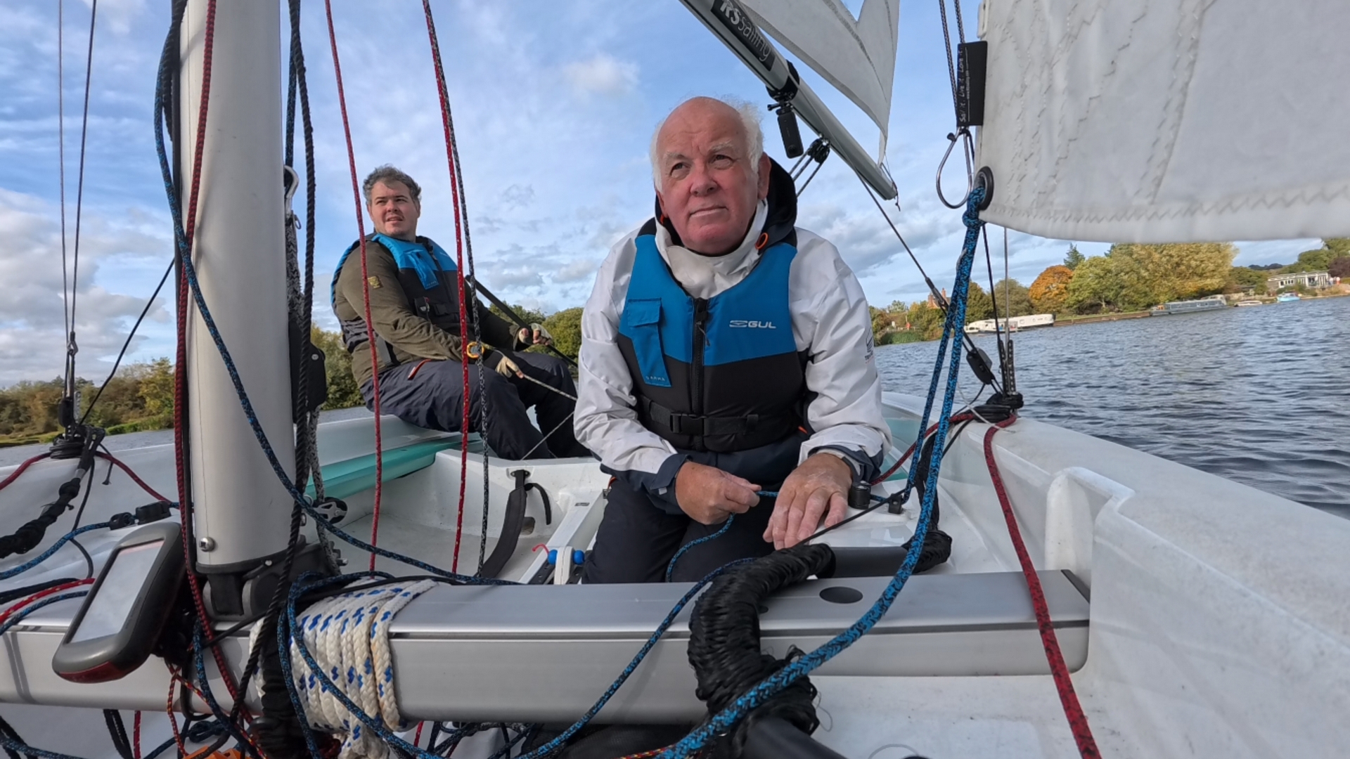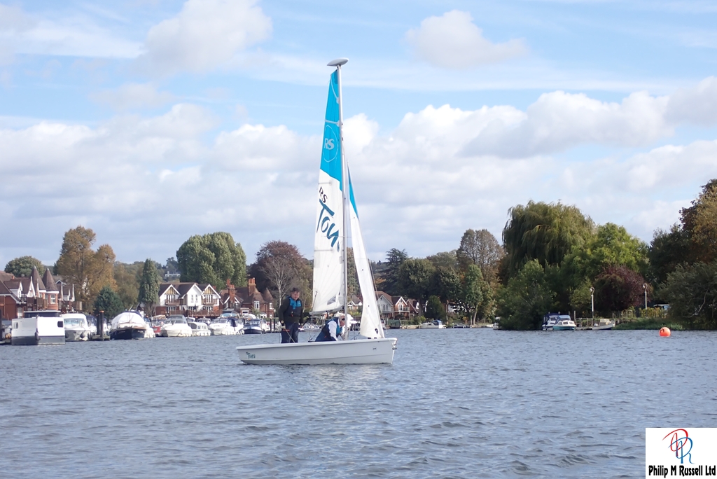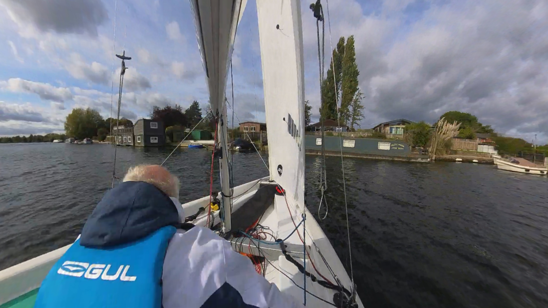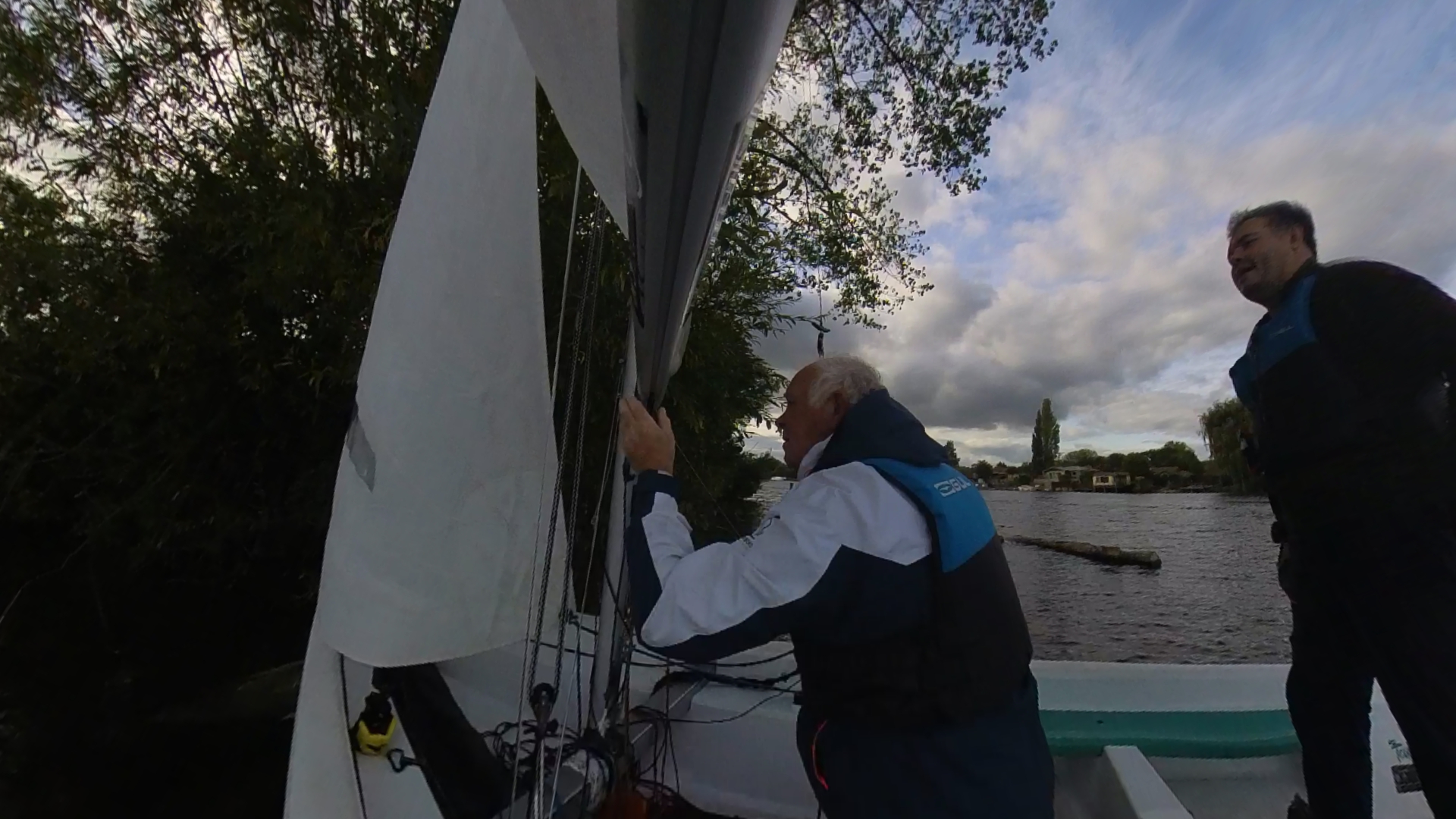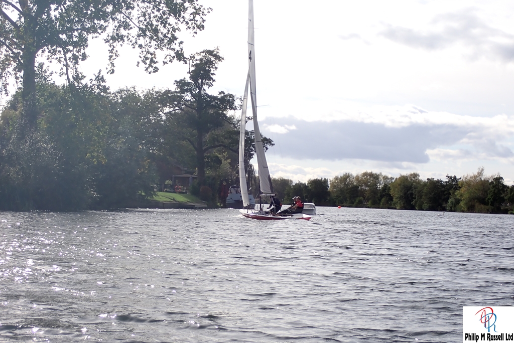 At the top mark, the Lightning capsized, flinging Keira into the river. Almost simultaneously, Ray in the Laser went over too, just metres away.