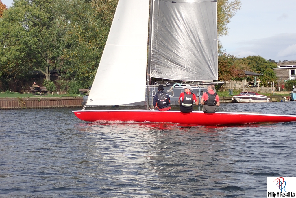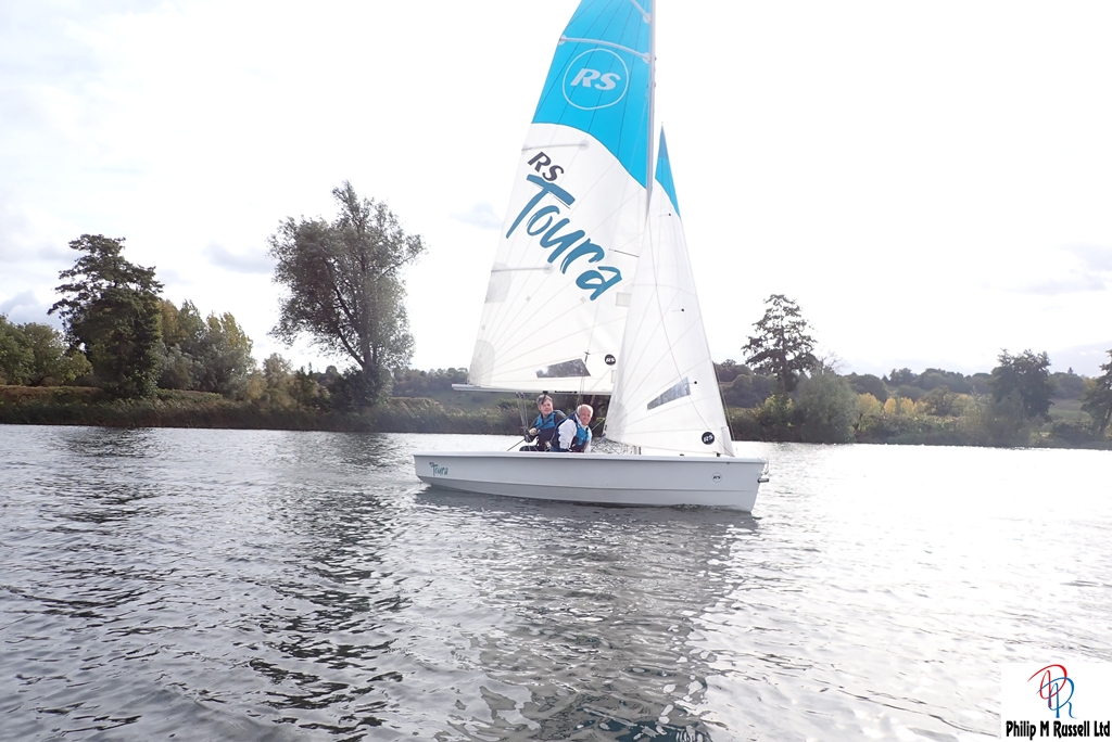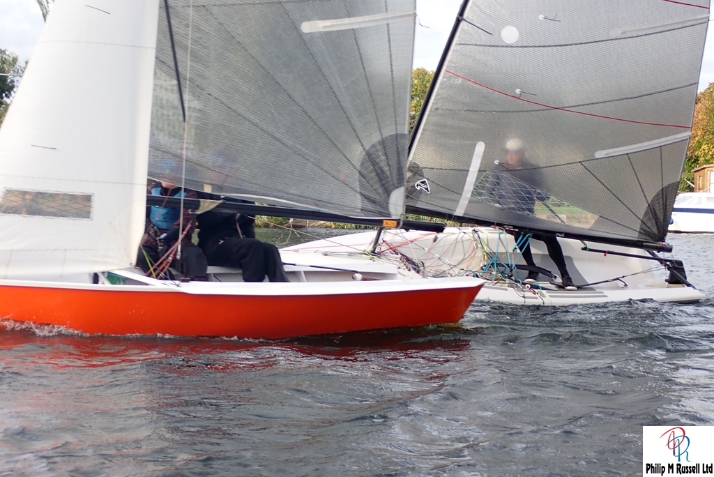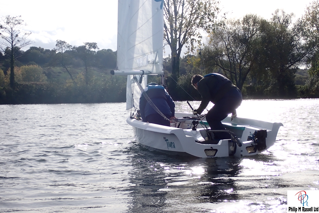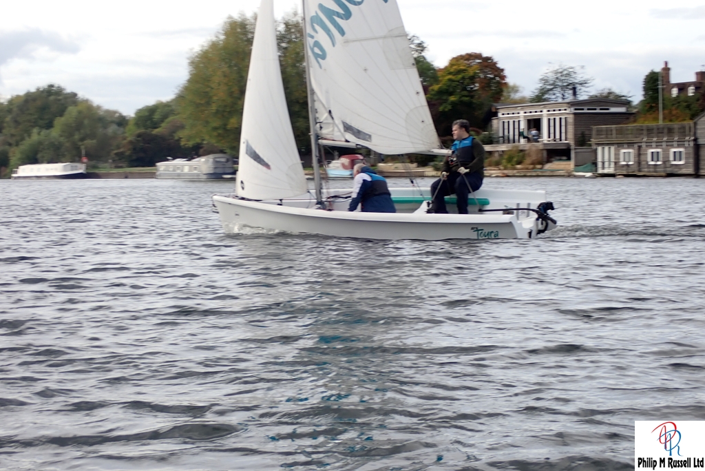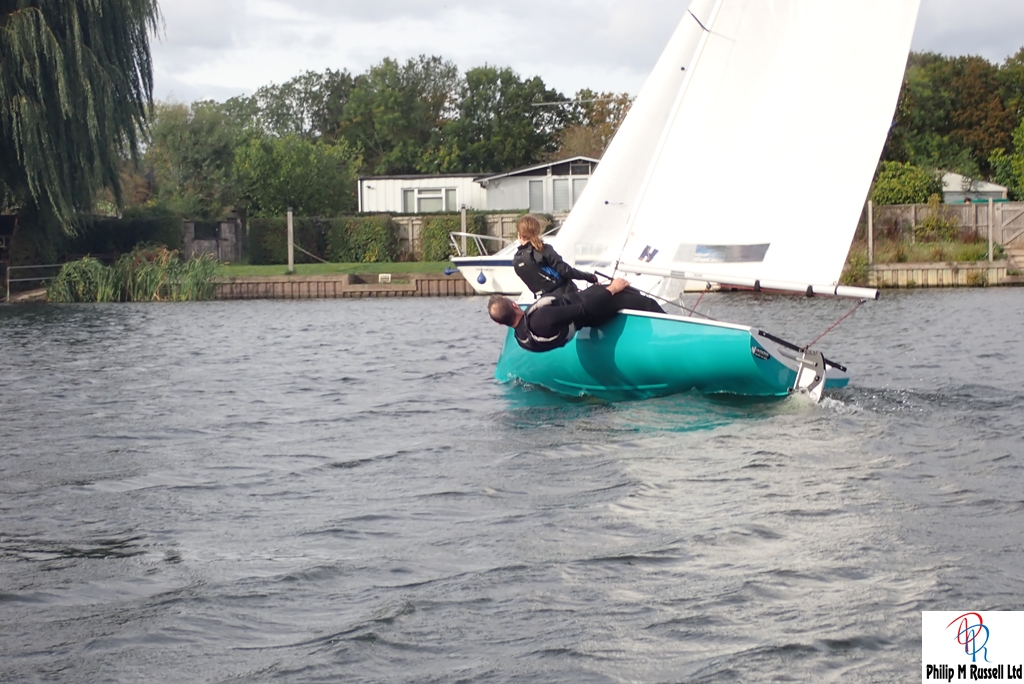 Paul wisely chose a 270° tack around the mark instead of a gybe, and we stayed upright. It was too windy to photograph, but we held our nerve and finished — just ahead of Ray and Keira.