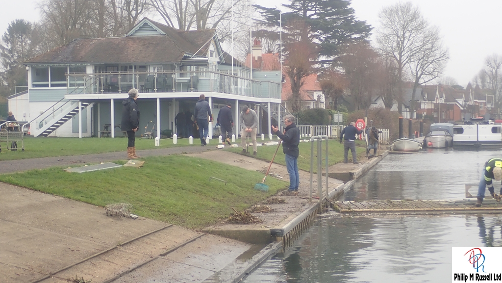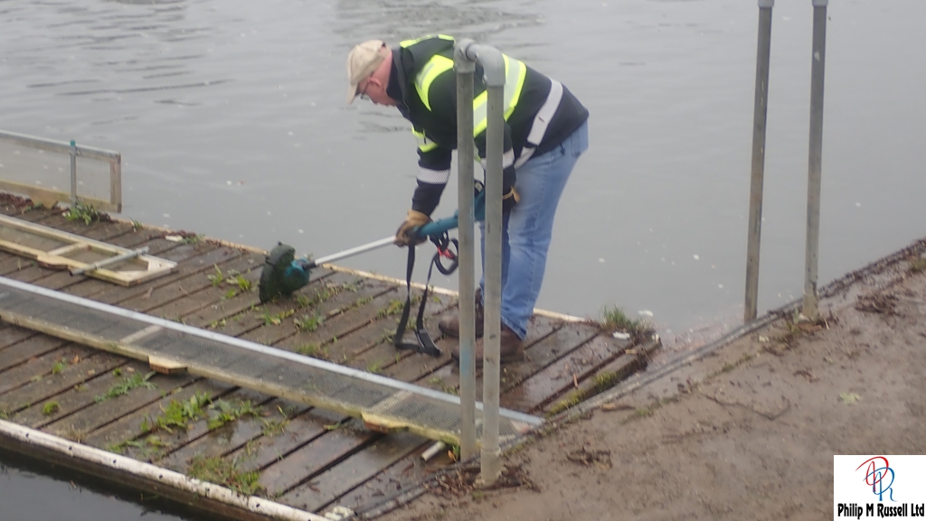 The list was quite short. Tidy the front and make it look nice after the floods and move a few boats. It took all morning with many hands making things easy. I strimmed the pontoons getting rid of most of the weeds,
