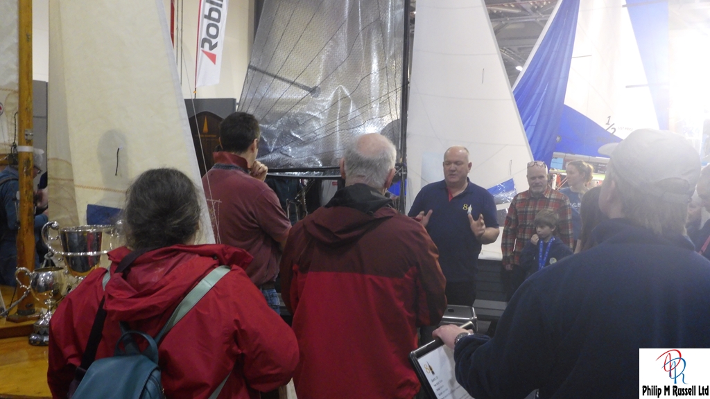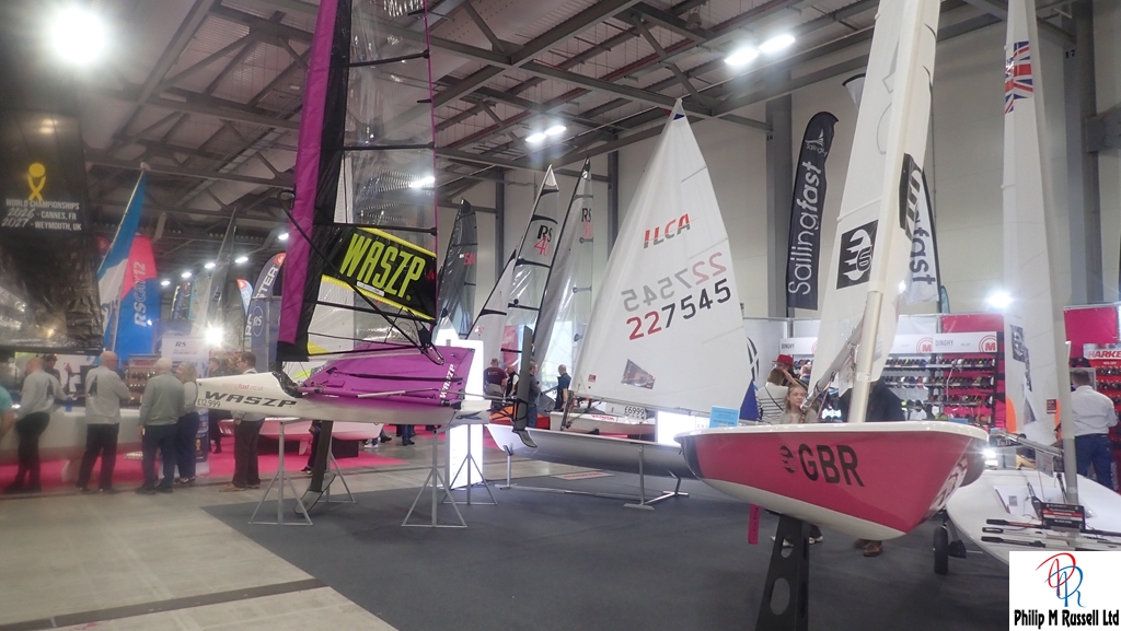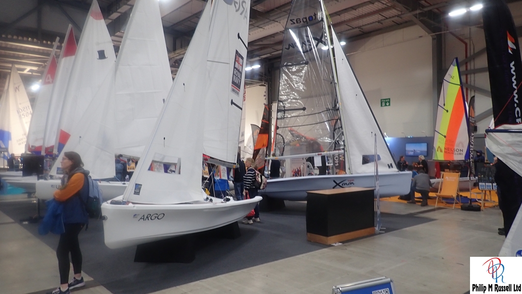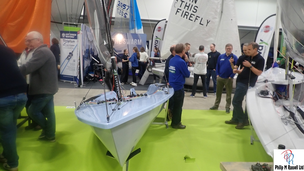 And then there were the big names: RS with a fleet (the RS200 caught my eye as a possible “Toura-ish but racier” future option), Ovington with a new Phantom that had “Paul might like this” written all over it, and the Wayfarer stand which completely reset my brain. I arrived thinking a Wayfarer was… a Wayfarer. Turns out there are racing flavours, weekend flavours, cruising flavours, and even a keel version that’s basically “capsize-resistant by design”. We also had a proper play with the “hands-on” bits: the SailGP foil setup where you can try grinding (and discover new muscles), plus a mini sailing challenge with big air pumps making wind so you can practise hoisting sails and tacking indoors—proof that sailing people will happily recreate the outdoors inside a building, just to get more sailing.