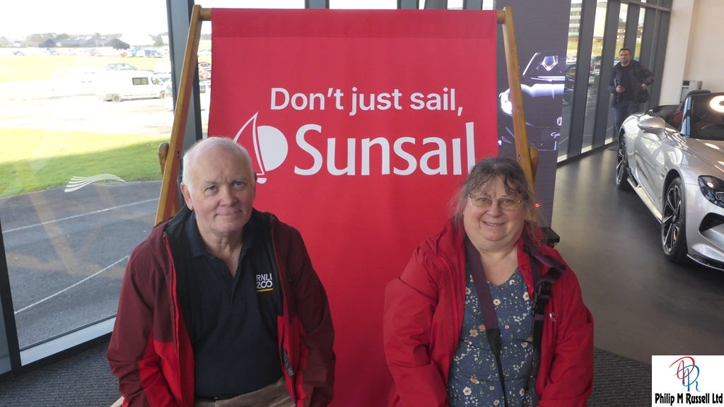 We set off for the RYA Dinghy & Watersports Show at Farnborough in the sort of rain that makes you start browsing kayaks “just in case”. Miraculously, we ended up parked so close to the entrance that I briefly wondered if my sat-nav had quietly upgraded itself to “VIP Mode”. First thing we clocked: the show had a big Sunsail presence, and yes—Ros and I absolutely did the responsible thing and sat in the deckchair like we belonged there.