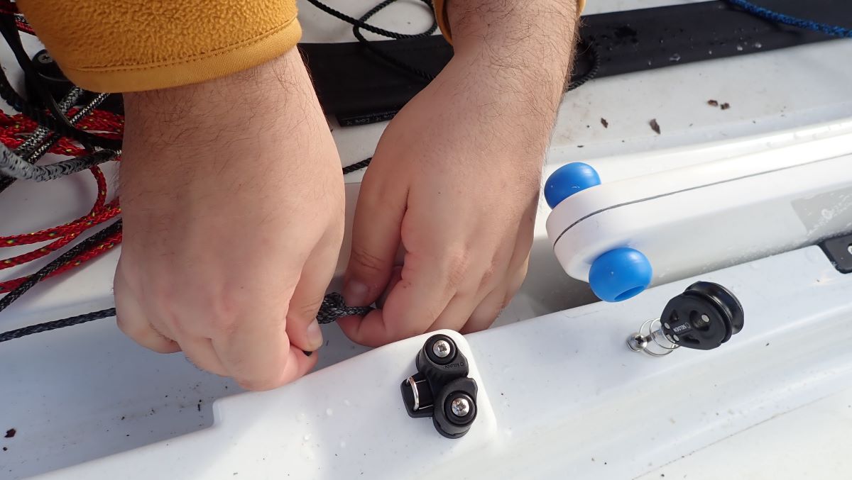 With a bit of ingenuity involving an oar, we managed to thread a rope through the sail chute. This task was made challenging by the length of the chute. But teamwork prevailed, and soon all the ropes were in place.