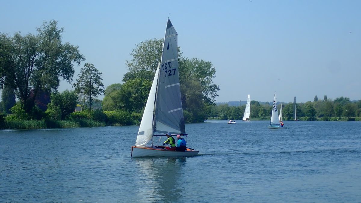 It was the day of the Ladies Race. A lady at the helm of all types of boats from 2 A-Raters to single handed dinghies. The race was about 3/4 of the mile upstream and back over three legs. We managed to video much of the race and you can watch the video here.
