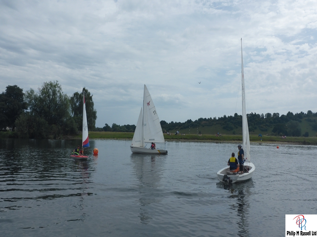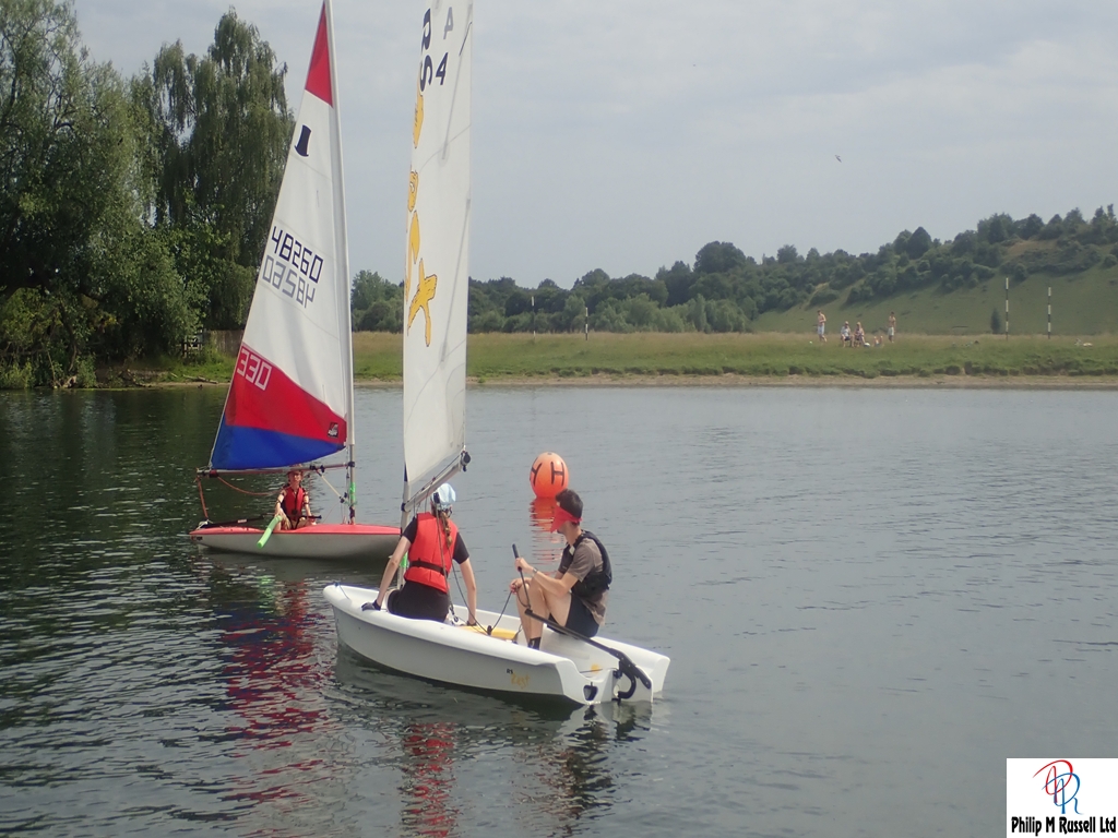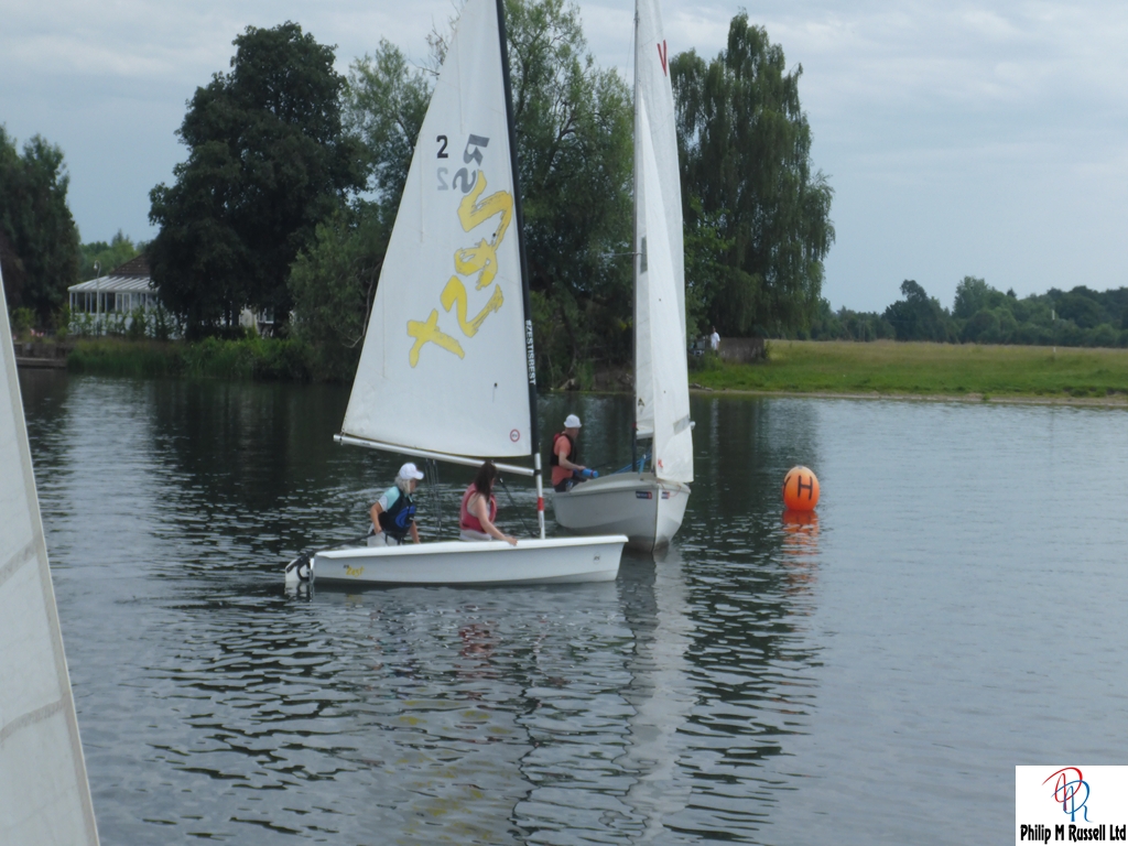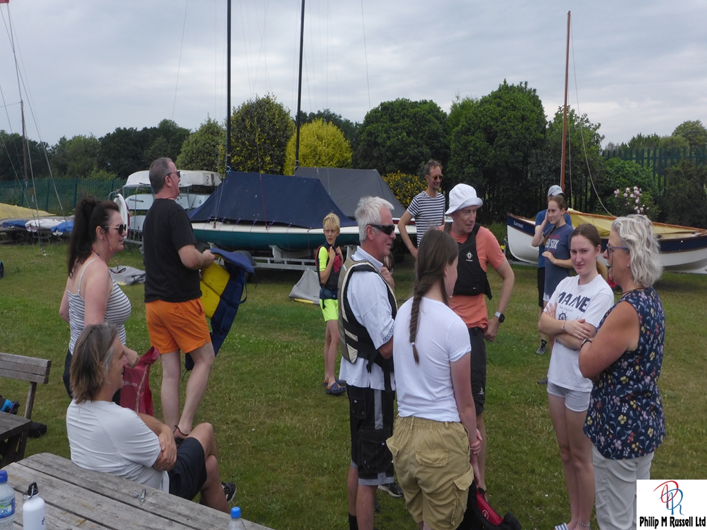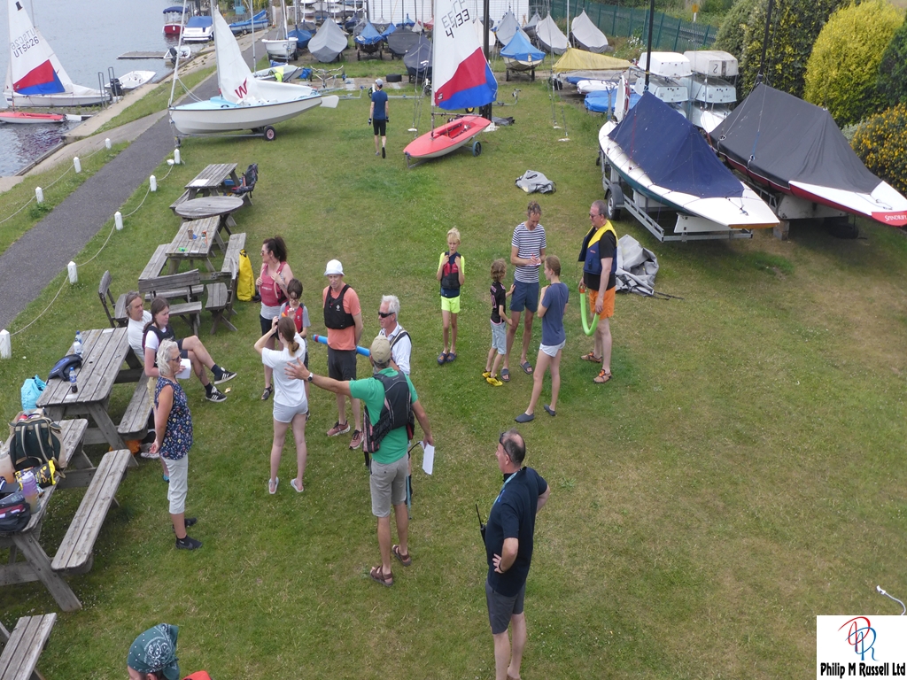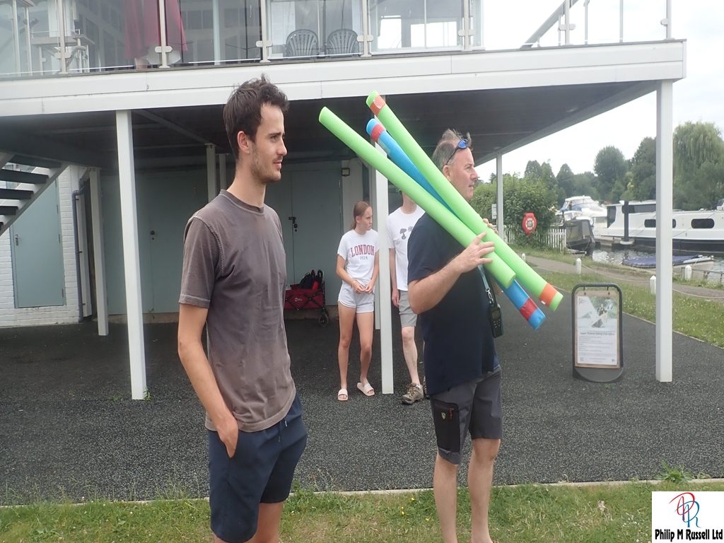 A number of members from the club of all ages and experience gathered and we managed to form three teams. The wind was light so the course was short. The batons were marked with the team colours, as were the boats. The rules - all the baton changes had to take place between the H mark and the yellow buoys and you had to sail around the triangular course and you were allowed a joker round ( lap) where the helm was blindfolded.