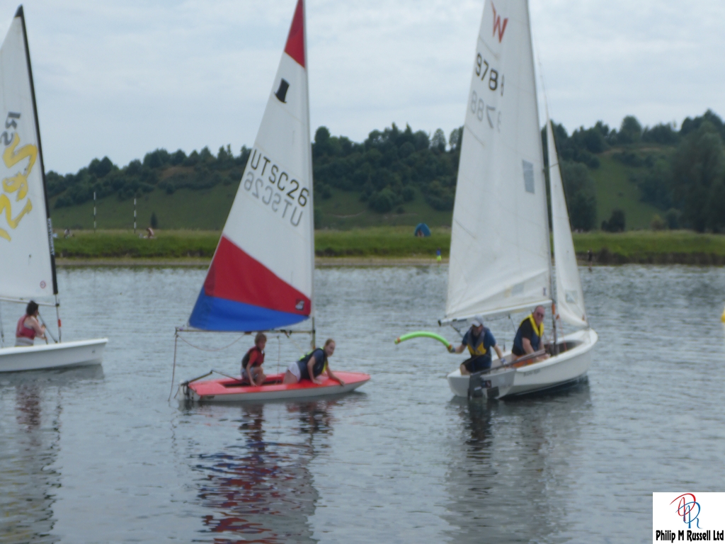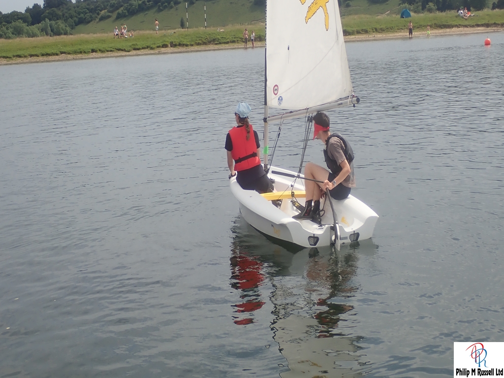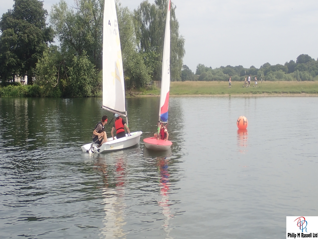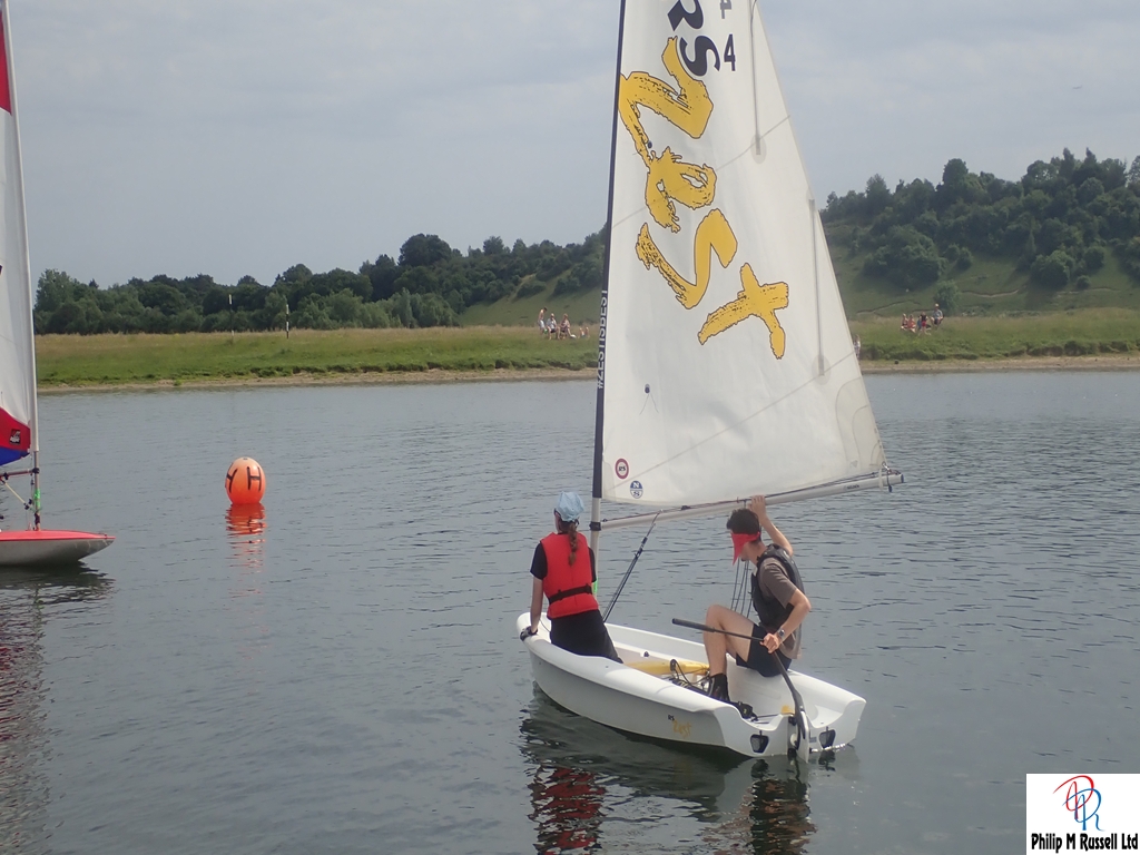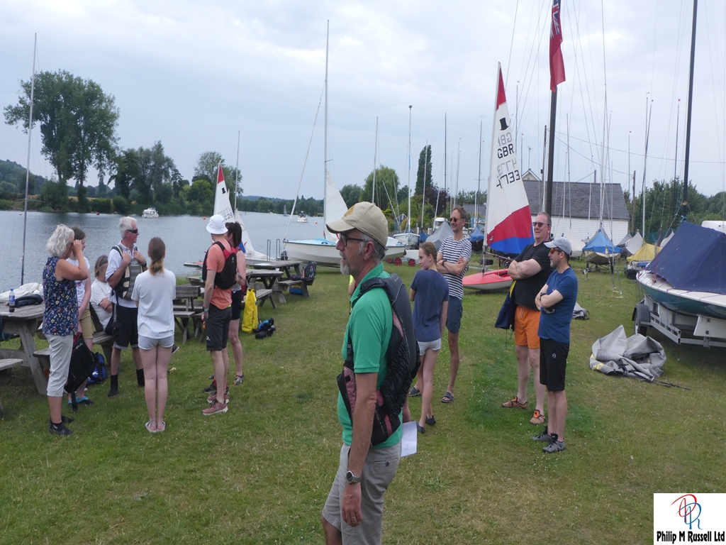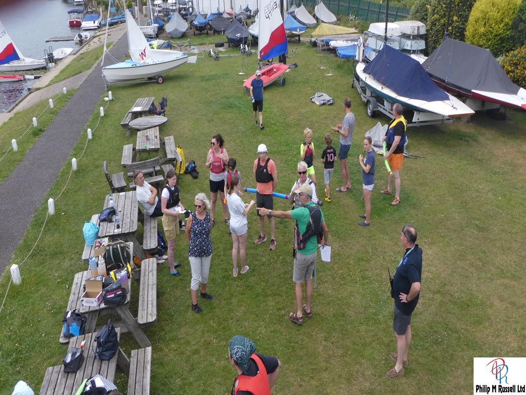 A number of members from the club of all ages and experience gathered and we managed to form three teams. The wind was light so the course was short. The batons were marked with the team colours, as were the boats. The rules - all the baton changes had to take place between the H mark and the yellow buoys and you had to sail around the triangular course and you were allowed a joker round ( lap) where the helm was blindfolded.