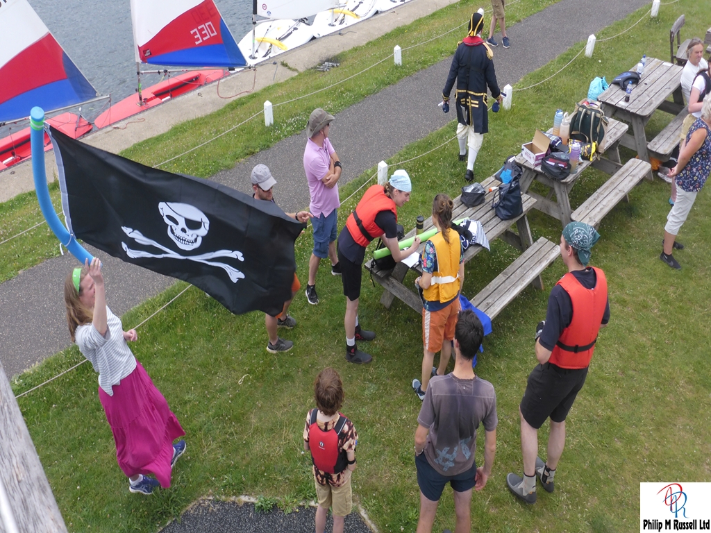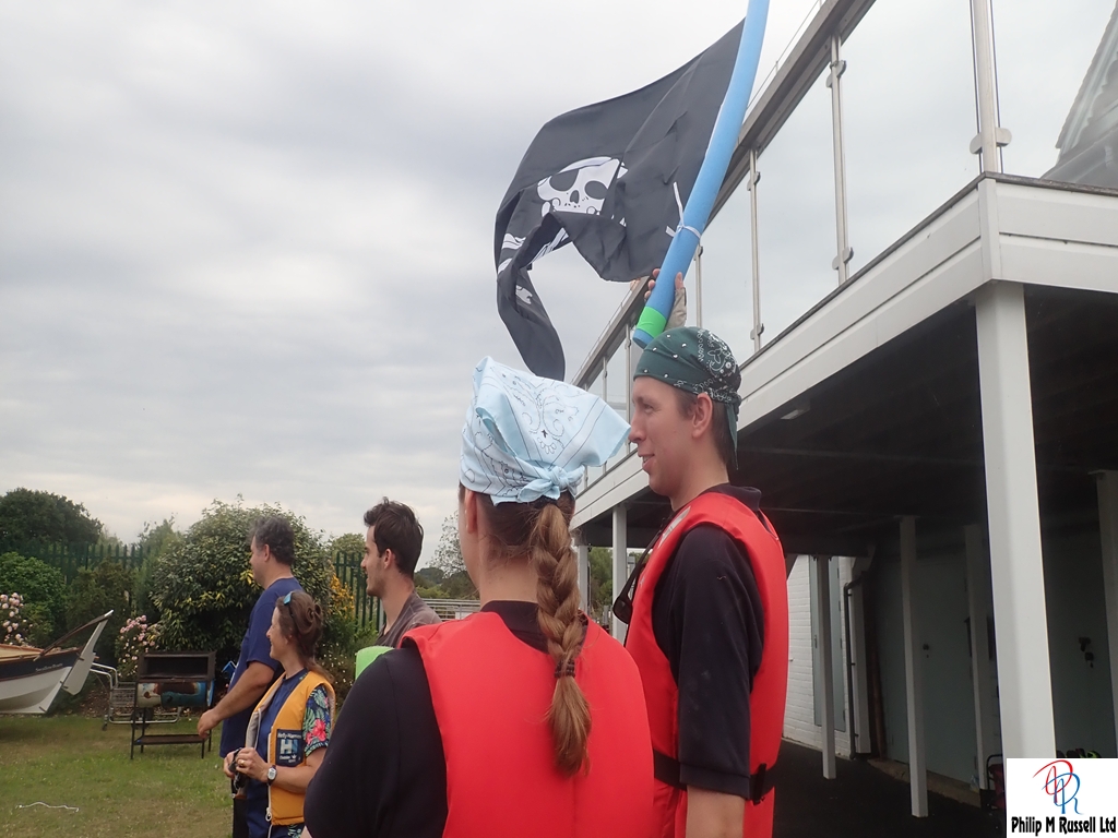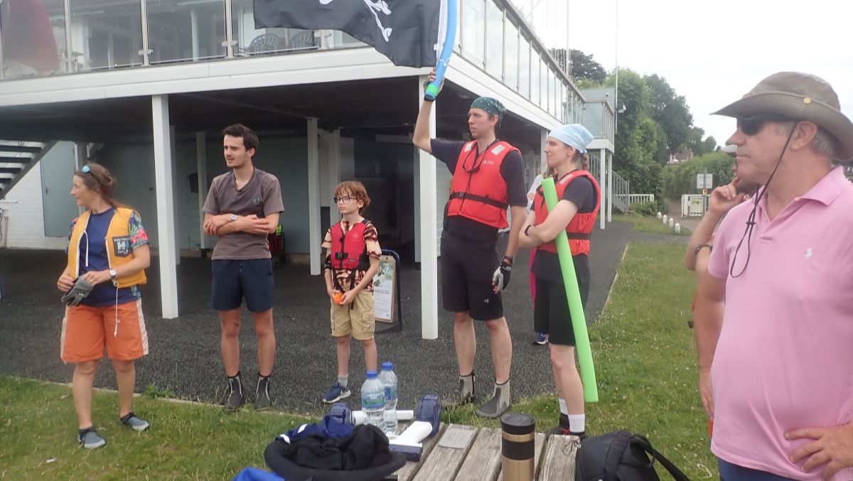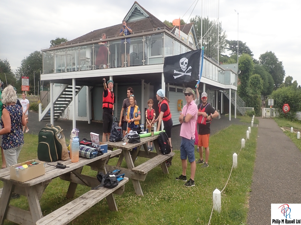 Missed Photos - the Safety Boat and Captain Beaky, coming to a halt on the River and offering salutes to the applause of the crews, The Epic water pistol battle between the Safety Boat Crew and the green Team of Don and Stuart as they waited for wind. Some of the crews paddling their boats. Philip walking into Bourne End in full costume and buying the prizes.