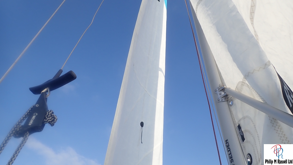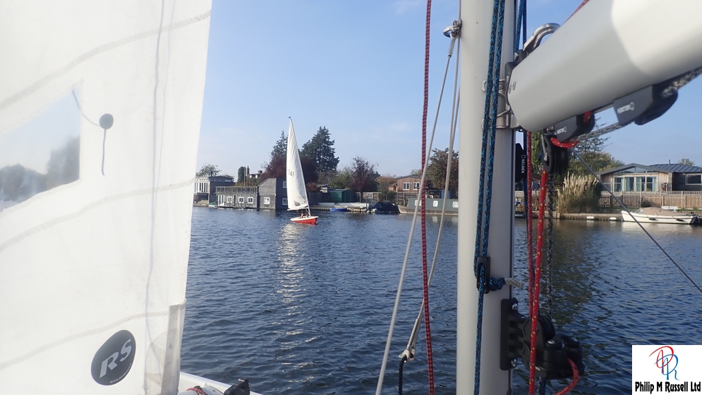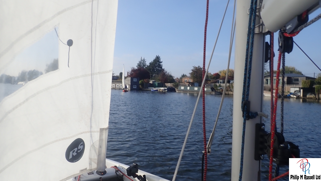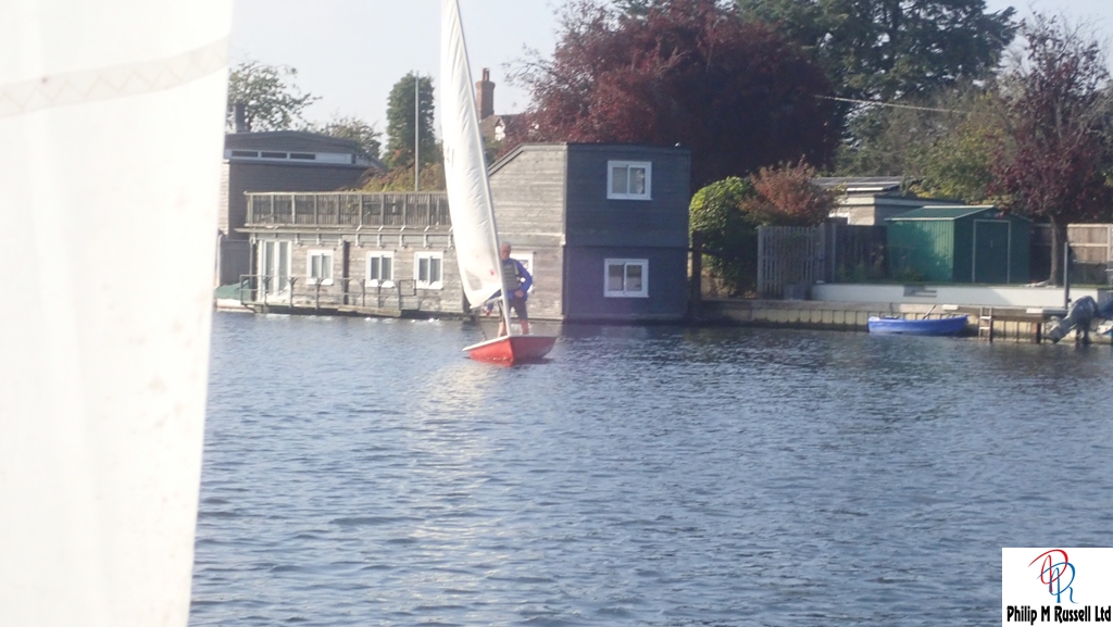 The flag came down and the Klaxon sounded twice. We were off. We were in first place. By the end of the club frontage, the Phantom had overtaken us and as Alaster moved in front of us. He called out to me to adjust my jib to match the angle and shape of the main. I pulled in the Jib. Too much called Alaster and I let it out a bit. Ray behind us in the laser called out that if Alaster continued to help us we might beat him in the laser.