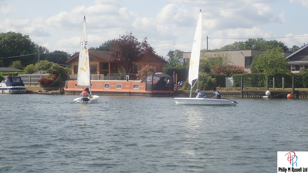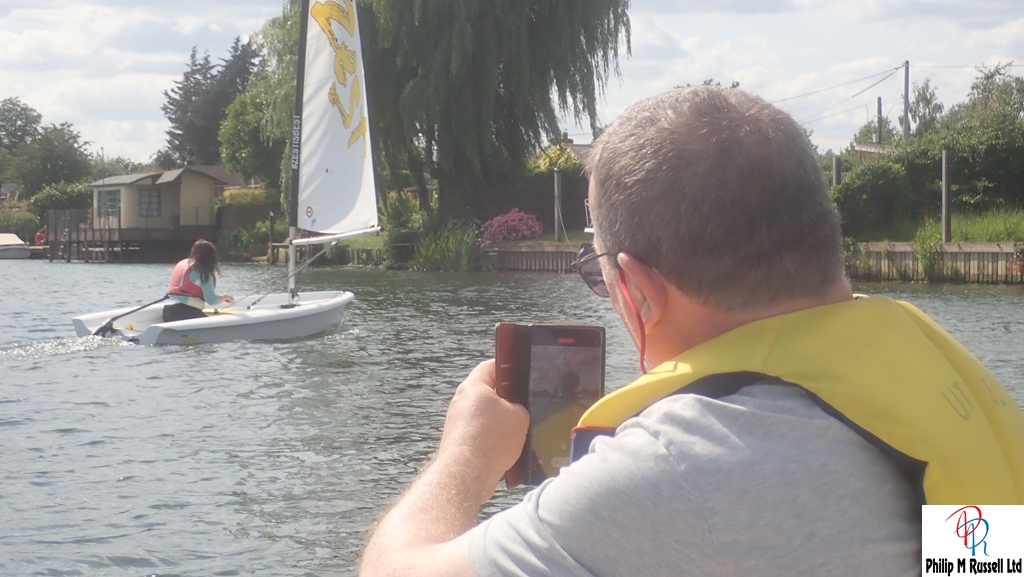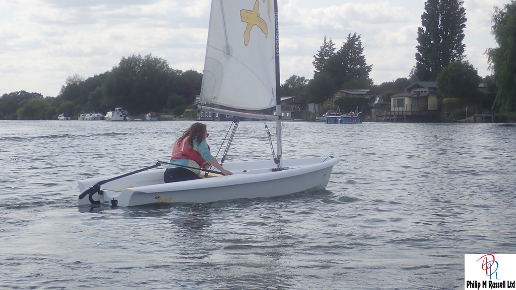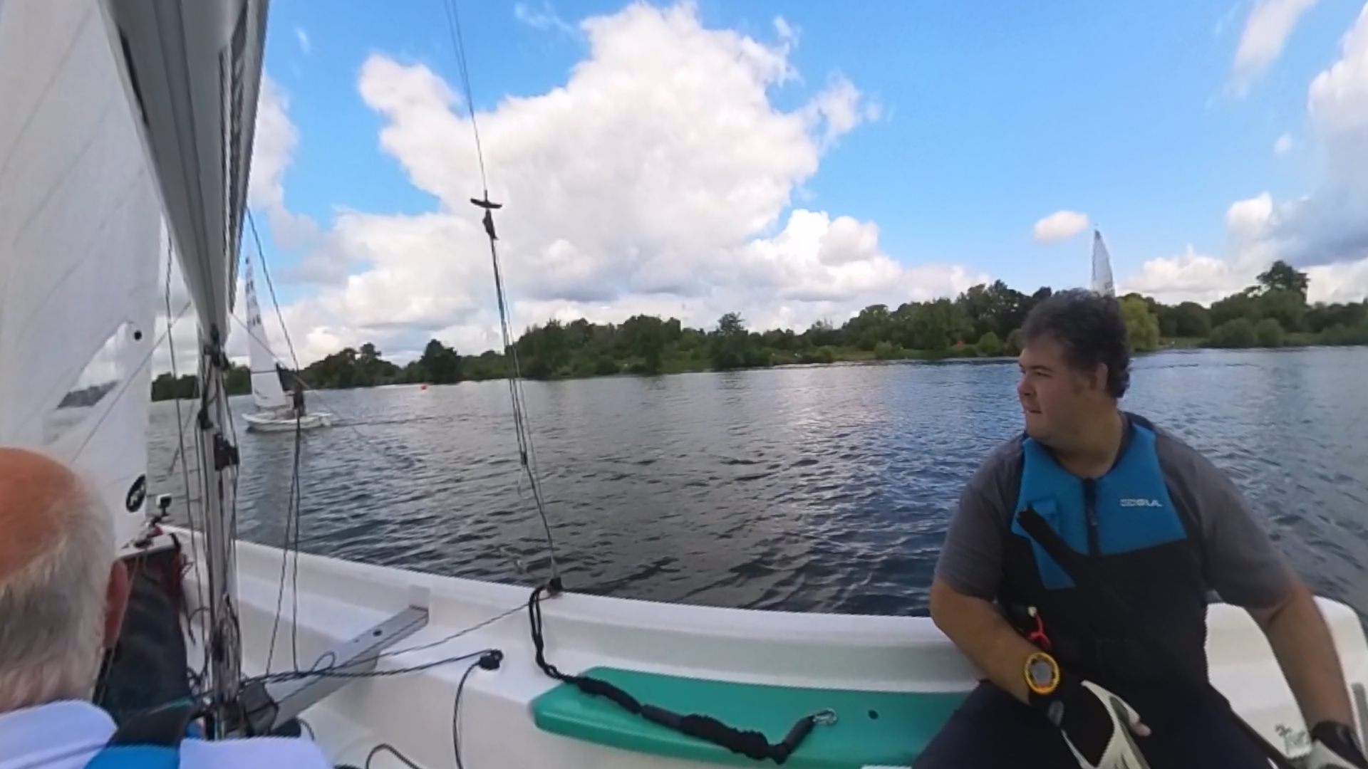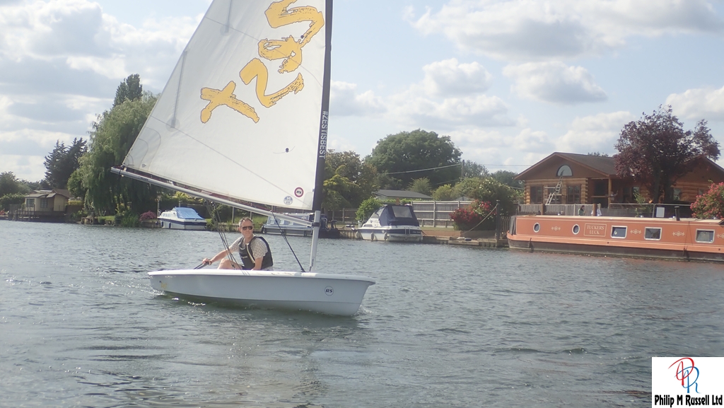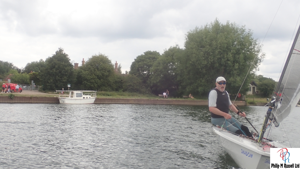 On advice, we tighten the shroud to make the boat run better and we think it did We started well but by the time we had reached halfway up river the leading boat had reached the mark and were coming back as us. The first race we managed 1 and a half laps of the four, and in last place we turned to get back so we could start the second race. This was four laps but we only managed two. Even with our handicap it doesn't make much difference - we need a lap or two head start to come anywhere near completing the race.
