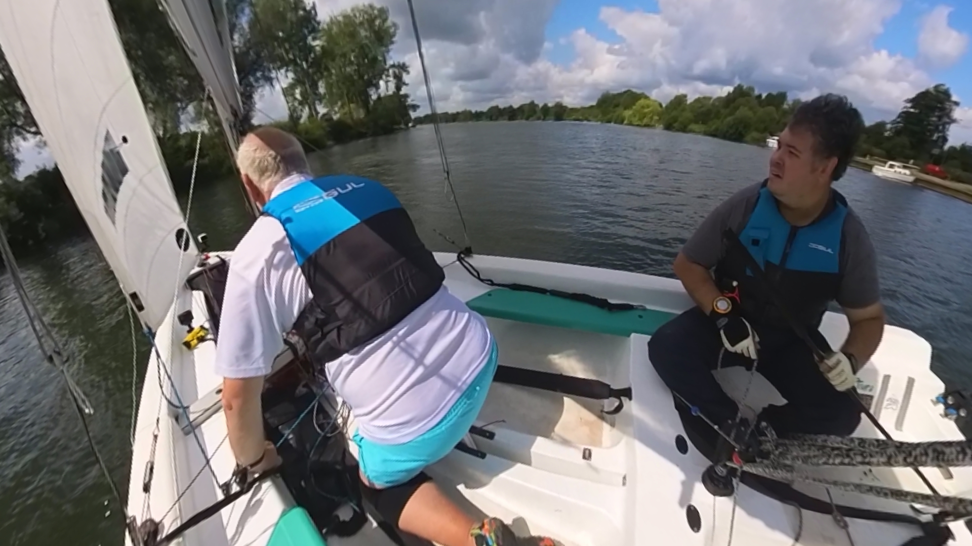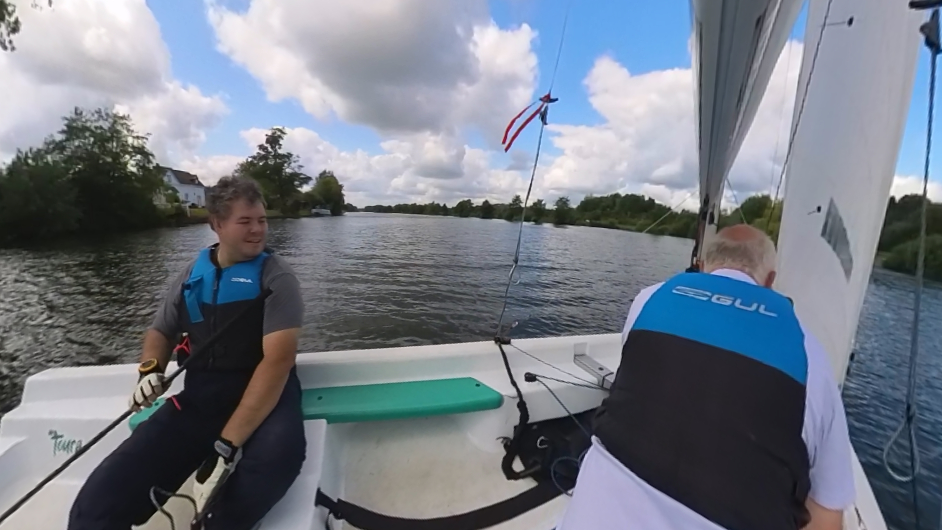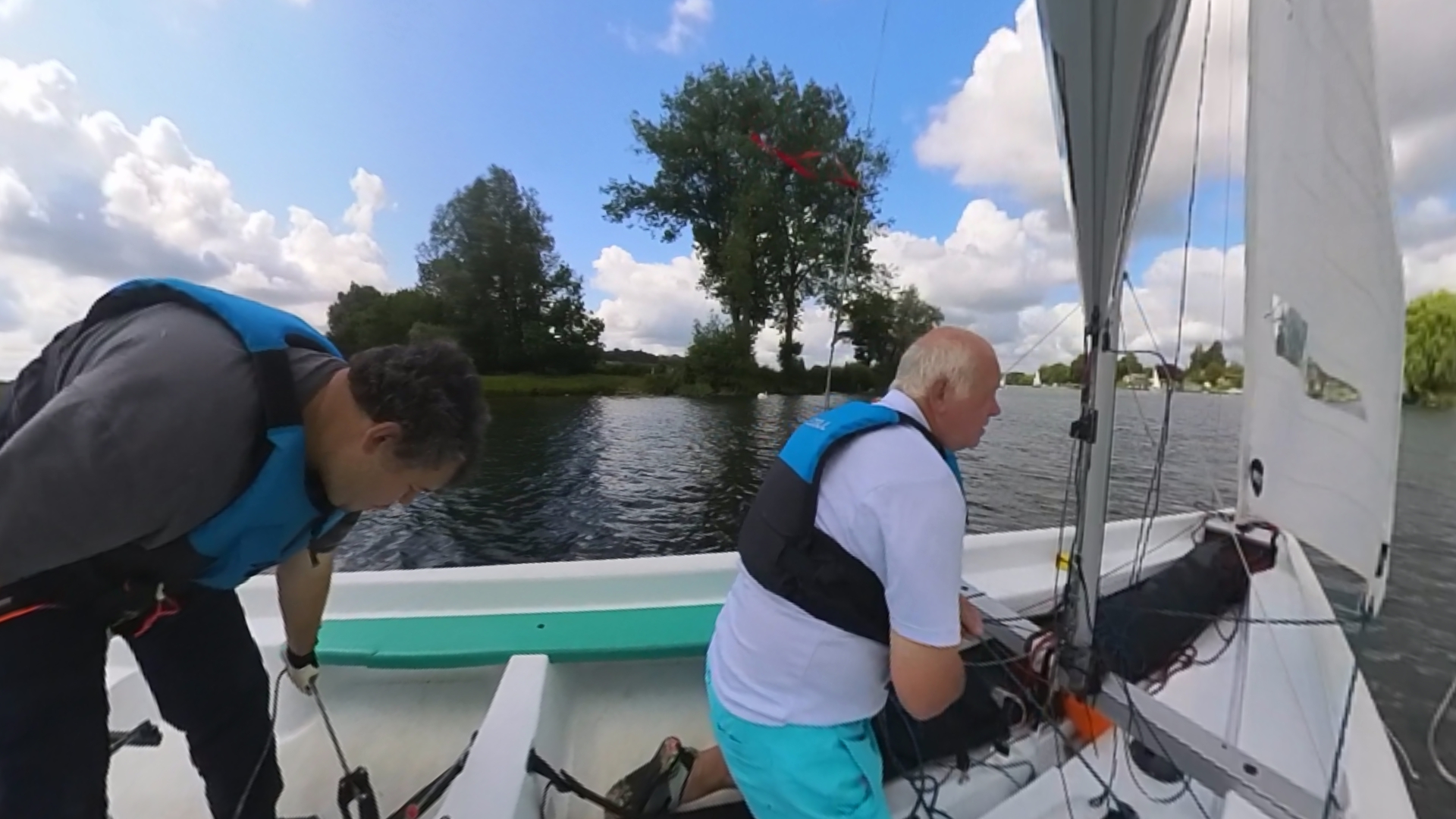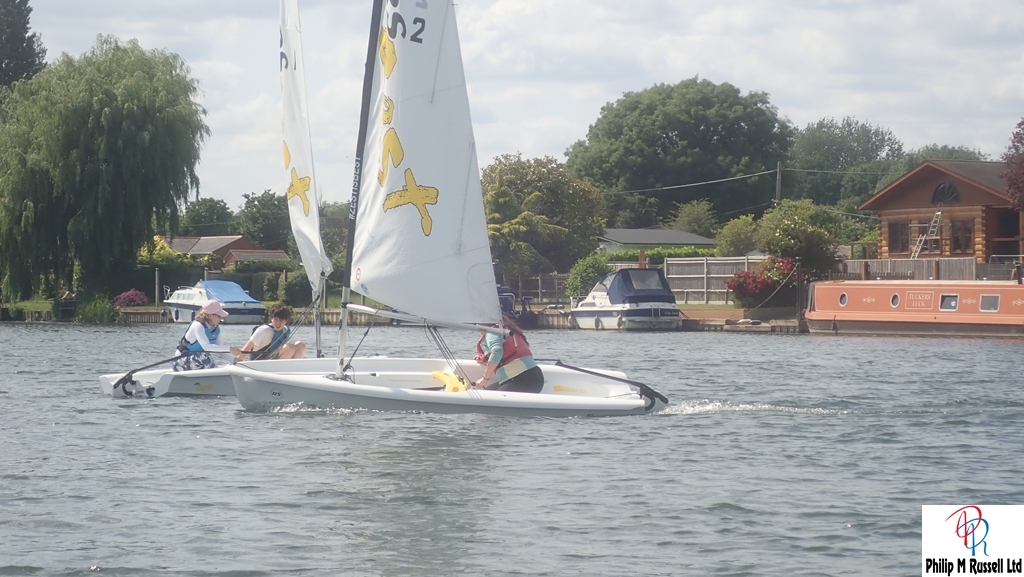 On advice, we tighten the shroud to make the boat run better and we think it did We started well but by the time we had reached halfway up river the leading boat had reached the mark and were coming back as us. The first race we managed 1 and a half laps of the four, and in last place we turned to get back so we could start the second race. This was four laps but we only managed two. Even with our handicap it doesn't make much difference - we need a lap or two head start to come anywhere near completing the race.