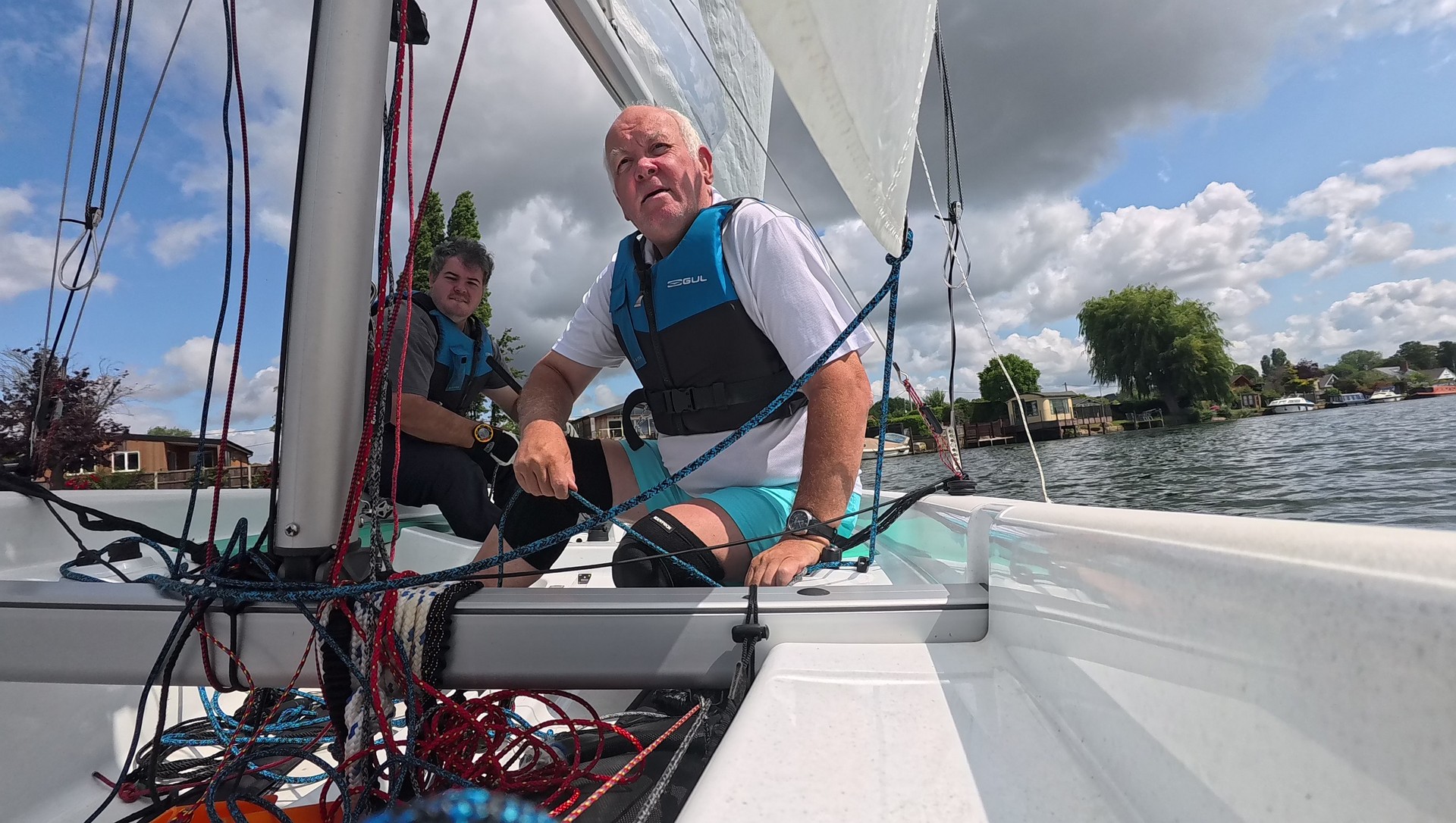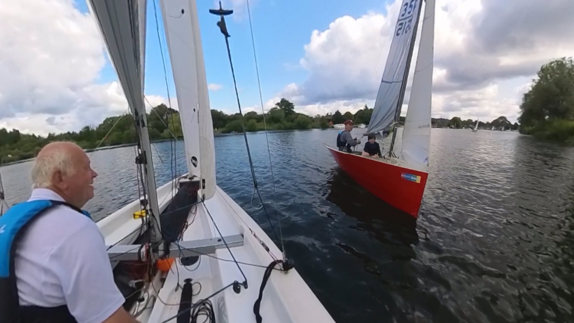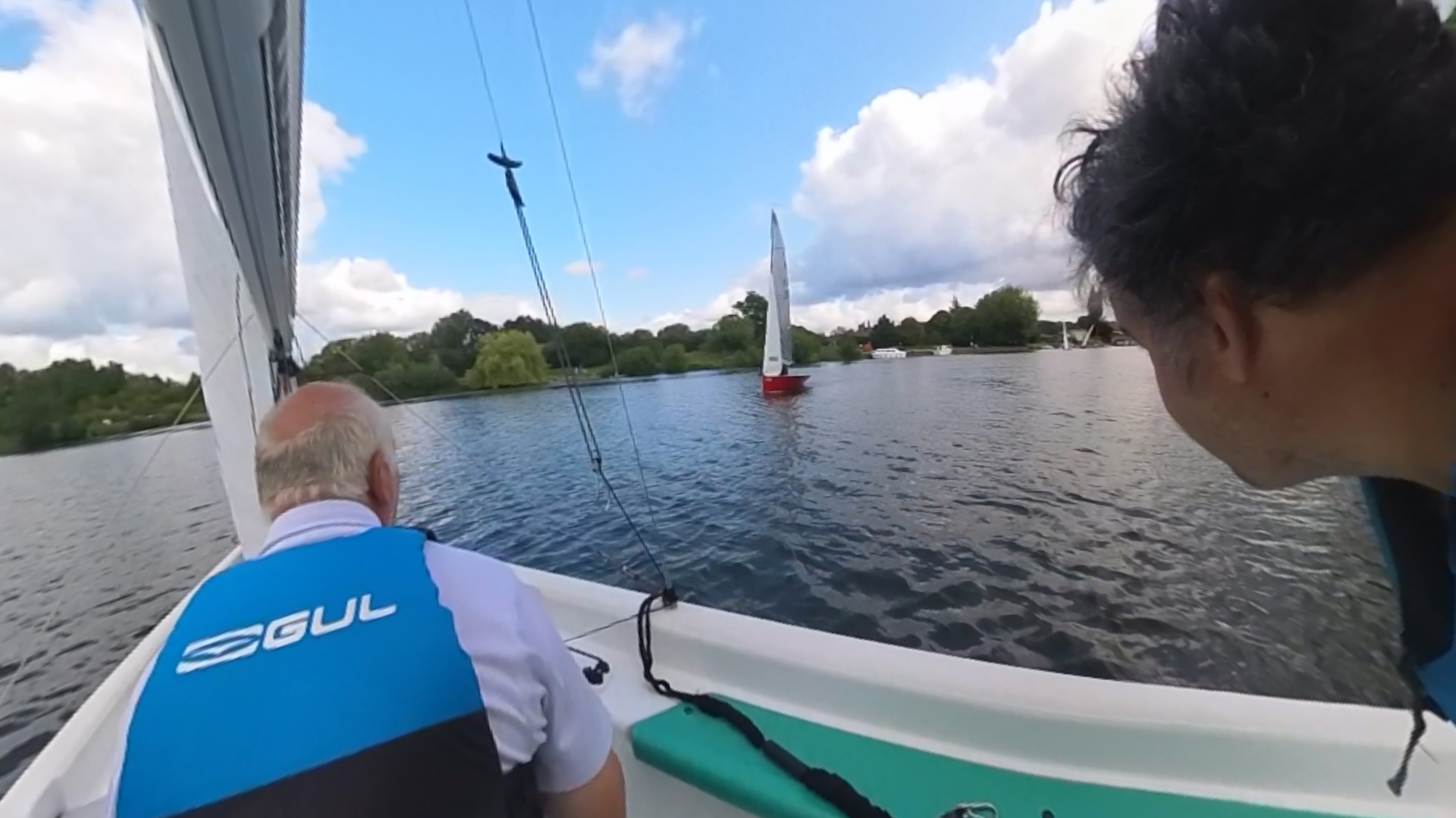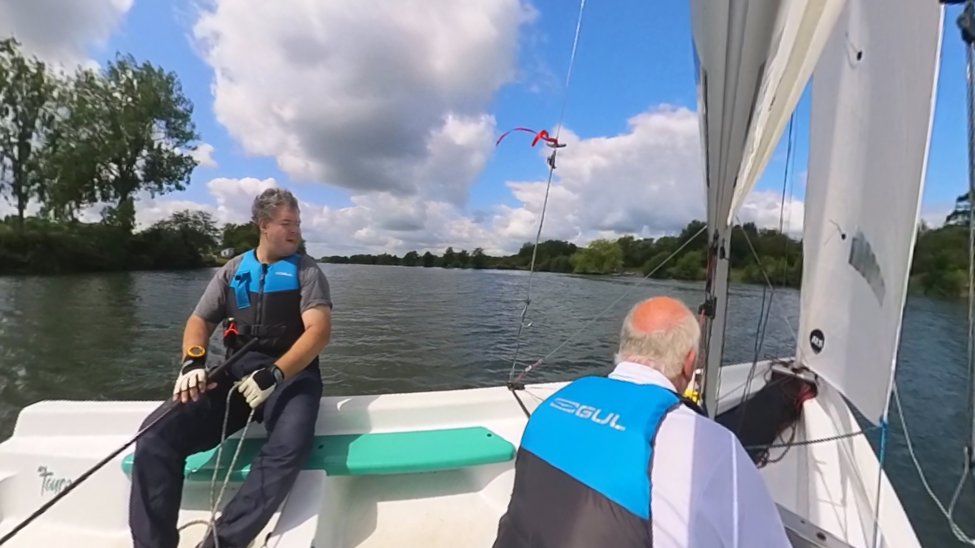 On advice, we tighten the shroud to make the boat run better and we think it did We started well but by the time we had reached halfway up river the leading boat had reached the mark and were coming back as us. The first race we managed 1 and a half laps of the four, and in last place we turned to get back so we could start the second race. This was four laps but we only managed two. Even with our handicap it doesn't make much difference - we need a lap or two head start to come anywhere near completing the race.