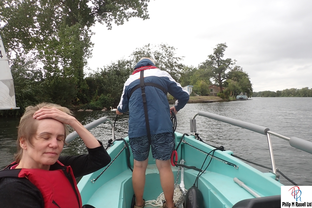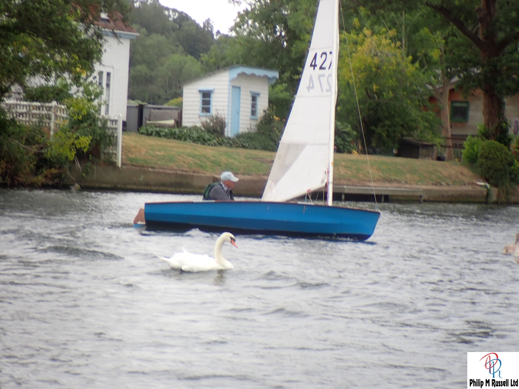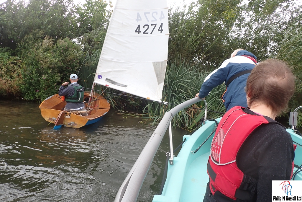 Next came John in the Zest, who discovered the joy of sailing in absolutely no wind. After several attempts to coax the boat into turning round to catch what little breeze there was, we finally admitted defeat and gave him a tow back to the pontoon. He accepted it with the weary look of a man who’d had enough “drifting practice” for one day.