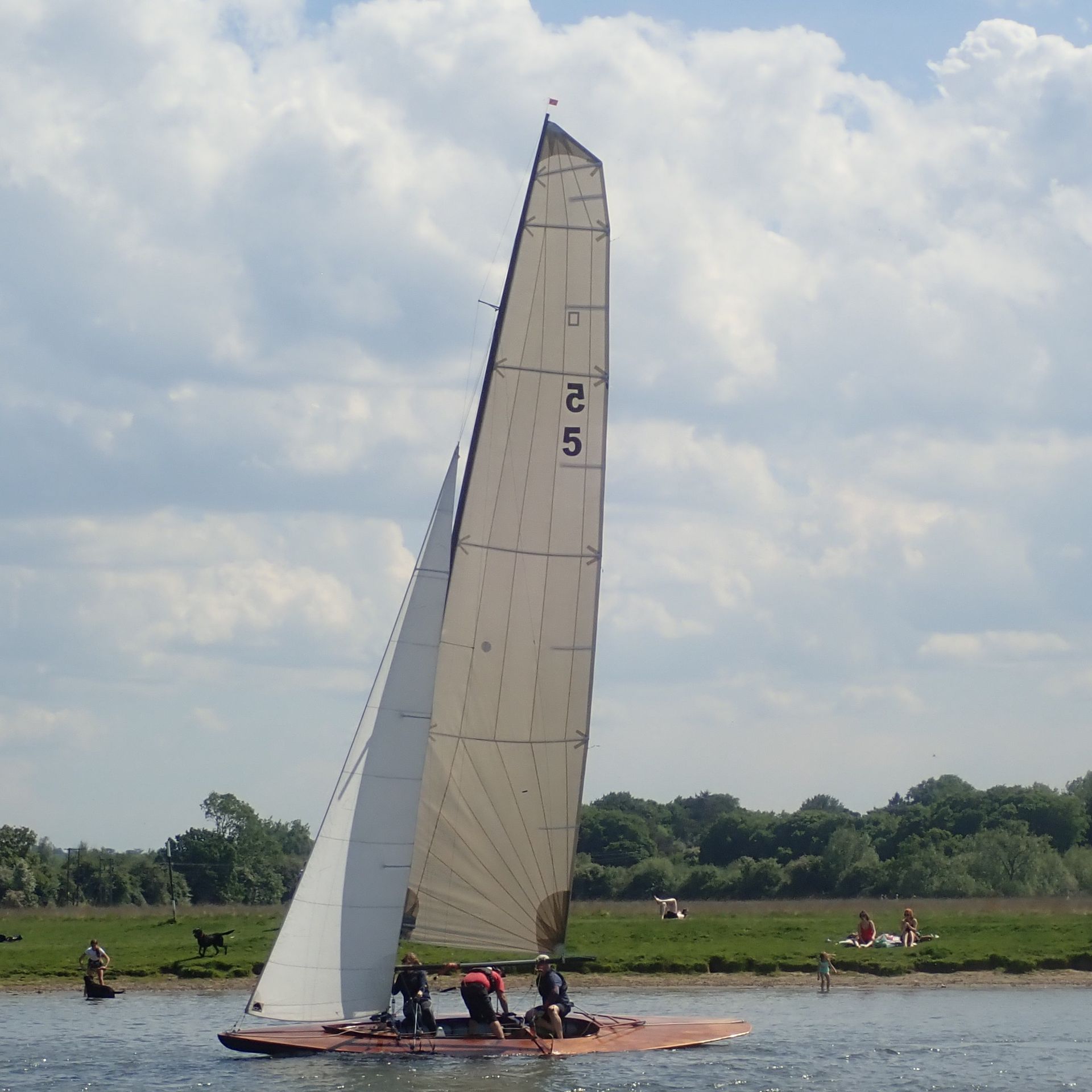 Happily, the story didn’t end with plastic taking over. In the 1990s and early 2000s, a revival of the wooden Raters took place. A new generation of craftsmen-sailors, notably Ossie Stewart (an Olympic bronze medalist from 1992), stepped up to restore the original boatsthedailysail.com. Stewart, who runs a boatyard next to Thames SC, led painstaking restorations of several grand old ladies of the class. In 1997, the restored Caprice IV (1907) won the Queen’s Cup and Thames Champion Cup, helmed by Stewart himself thames-sailingclub-history.thecomputerguy-it.co.uk thames-sailingclub-history.thecomputerguy-it.co.uk. In 2003, Stewart’s team completed a keel-up rebuild of Carina (1903) in time for her 100th birthdaythedailysail.com, and promptly Carina went out and won the Scamp Cup and Thames Champions Cup on handicapthames-sailingclub-history.thecomputerguy-it.co.uk thames-sailingclub-history.thecomputerguy-it.co.uk. Next they turned to the hallowed Ulva: starting in late 2003, Ulva’s restoration saw almost the entire hull replaced, using the original as a mould to shape new timbers thedailysail.com thedailysail.com. Only about 15% of Ulva’s original fabric remained – a testament to how much work was needed – but by 2005 she was back, gleaming and fast, even appearing (fully rigged with a replica bamboo dipping lug sail) as a star exhibit at the RYA Dinghy Showthedailysail.com. Other wooden boats like Vagabond also underwent comprehensive refits around this time (Vagabond’s occurred in the 1980s, launching the “wooden resurgence” by showing that a rebuilt 1907 hull could beat the new boats)thames-sailingclub-history.thecomputerguy-it.co.uk. By the mid-2000s, the class had achieved a healthy balance: a fleet composed of both the rejuvenated centenarian wooden boats and the fleet-footed GRP boats, racing on equal termsthamessailingclub.co.uk. To level the field, many wooden boats adopted modern rigs (aluminum or carbon masts, Mylar sails), while conversely some GRP boats even added wooden decks for stiffness and reduced weight aloft thames-sailingclub-history.thecomputerguy-it.co.uk. The net effect was that each boat, old or new, had its own strengths – and on any given day a well-sailed classic could still beat the best of the newer ones.