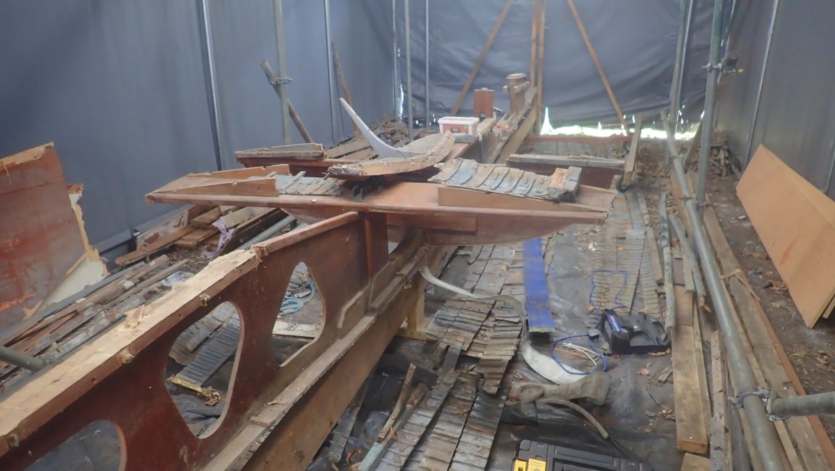 The bow is really all that is left, but we could see how this had been damaged and was a recent replacement ans the plank lines were not a smooth curve.