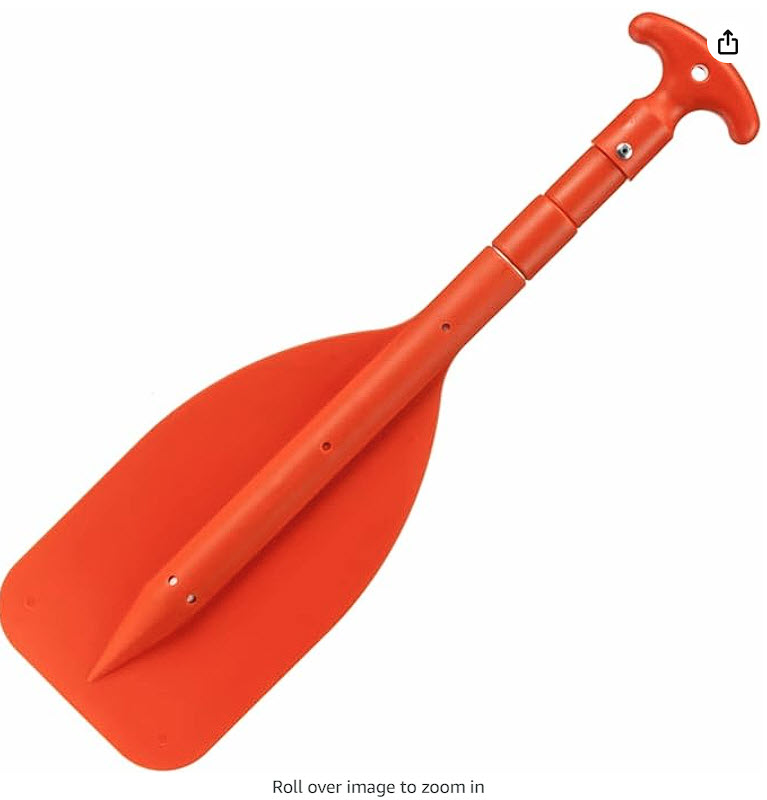 Bing telescopic and bright orange it is small enough to get stowed away somewhere and be easily seen. The pole expands easily even when the crew are under pressure and as a bonus it floats are all good oars and paddles should.