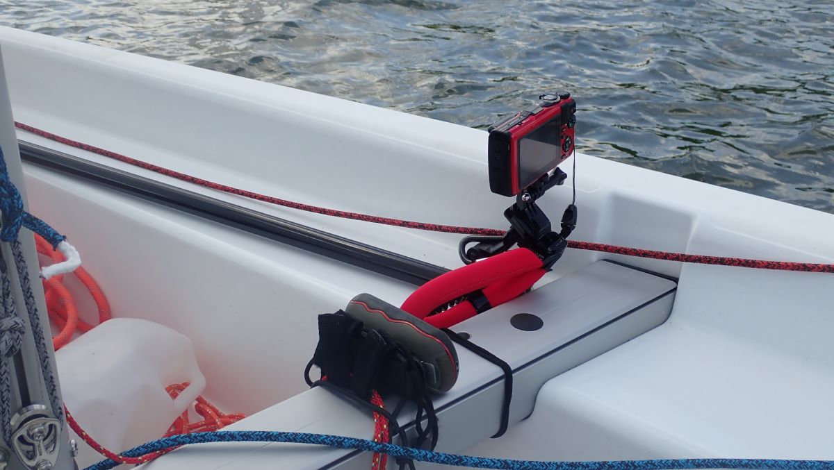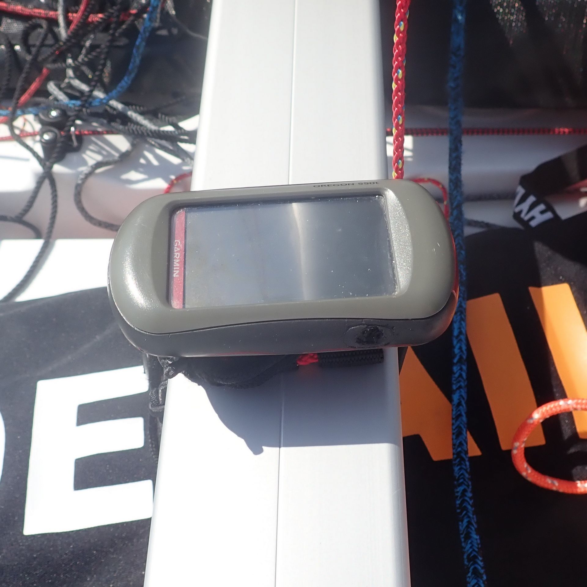 I am using an old Garmin Oregon 550t GPr to record the boat route. The gps is tied on to the mast support. It needs a better mount but it might need a newer and better GPS.