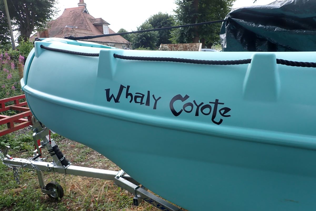 The boat got its name Whaly Coyote. Named by Paul, he went through many appropriate names Whaly of a Good time and others but we all liked Whaly Coyote named after a Loony Tunes favourite the old Wile -Y Coyote. Perhaps we will add a logo later We felt that we needed an appropriate font and this one looked about right for the character.
