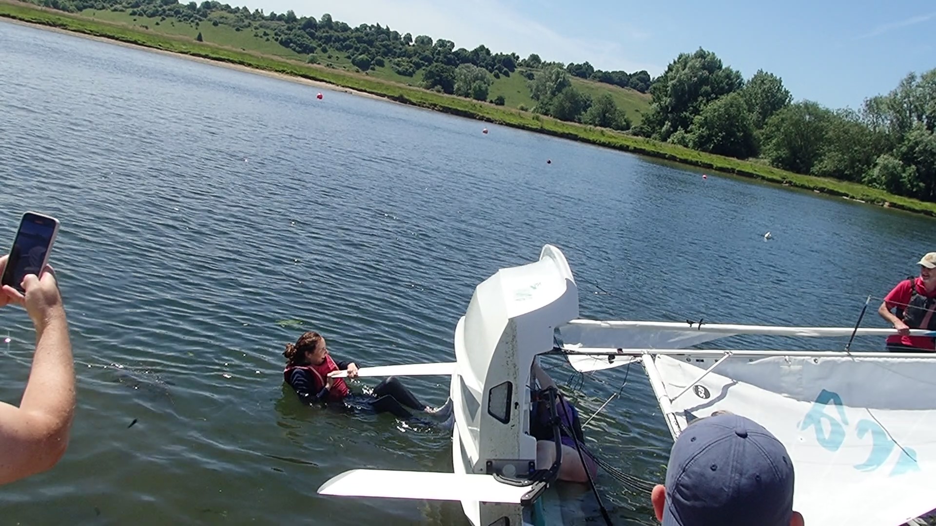 Mark our instructor had a plan - a nice warm day in June, the Sun was shining and the water temperature was not too bad. Time to learn what to do in the event of a capsize. Here we are tackling something every sailor knows will happen at some point—capsizing. Whether you’re a seasoned sailor or a complete beginner, capsizing is an inevitable part of dinghy sailing, especially on the unpredictable waters of the Thames.