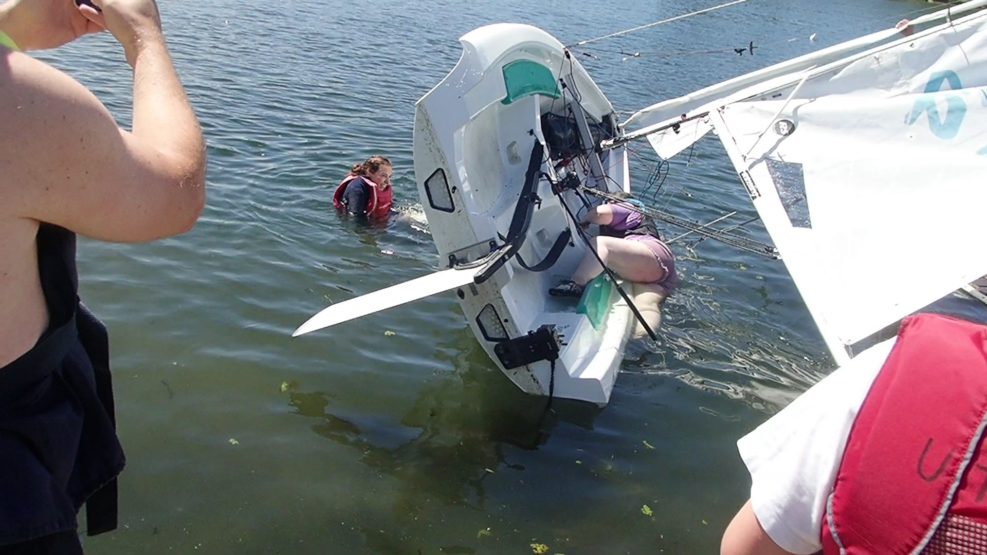 I did my capsize practice in the summer, and, of course, it was essential to have experienced sailors, instructors, and a safety boat nearby. You’ll want someone who knows what they’re doing to guide you through the process—someone who can prevent you from drifting off to France while you’re struggling to right the boat.