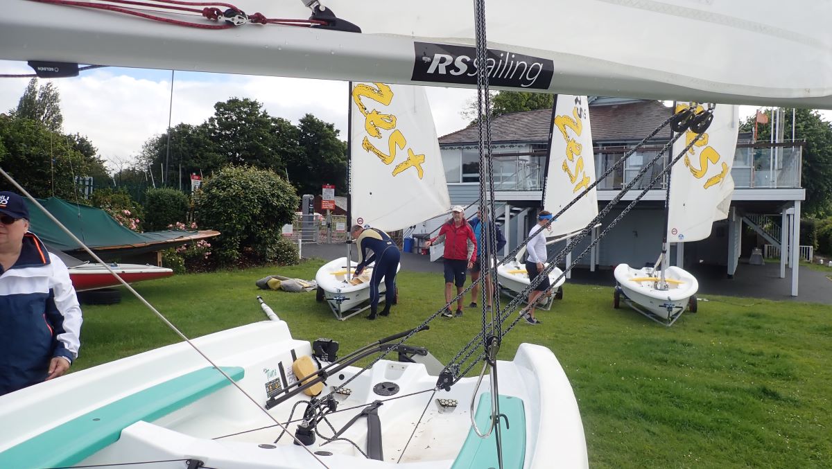 We had RS Zests and an RS Toura. The Zests were quite easy to rig. Some had not been taken out before so we had to put the sail over the mast and then raise it up and attach the boom and attach the sail to the boom and pull on the sheets.
