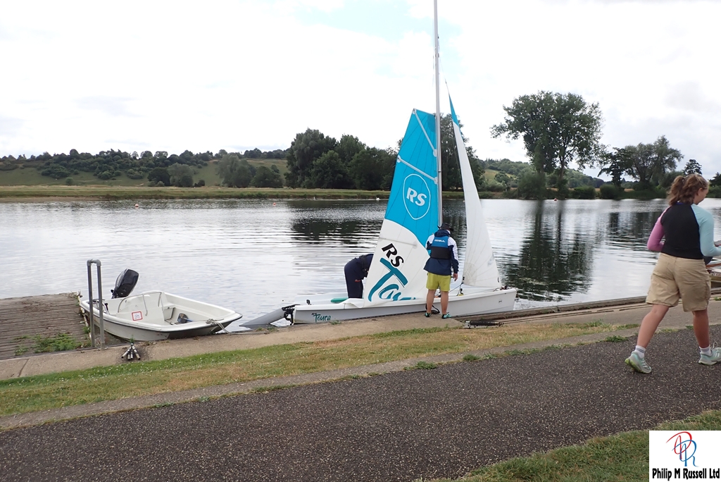 It always seems to take longer to get the boat ready than the time you have. We have to take off the covers, fit the cameras (optional but great if you want to learn from your mistakes) fit the sail to the mast but not to the boom or hoist it up too far, wheel to the water and launch