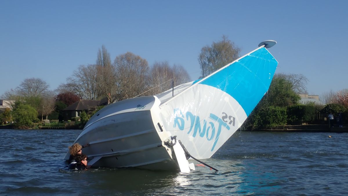 "The daggerboard is fully down to reduce leeway and maintain course."